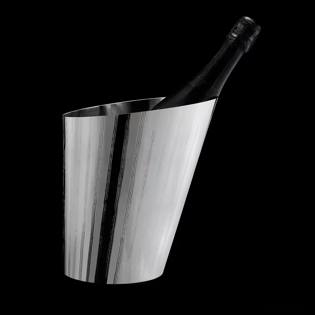 Asymmetrical champagne bucket beautifully handcrafted in a silver-plated alloy by master silversmith Zanetto.