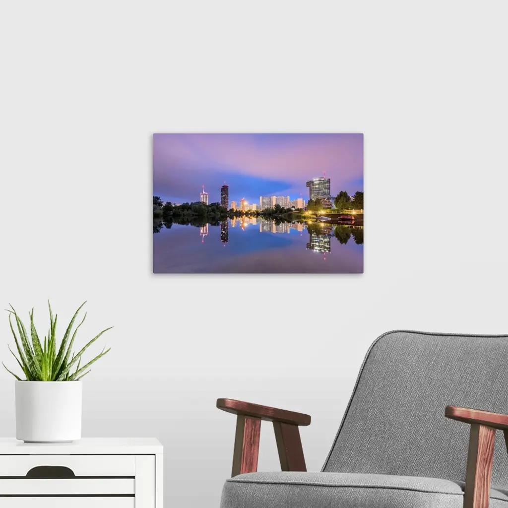 Vienna, Austria, Europe. The Skyscrapers Of Donau City In The Morning Dawn