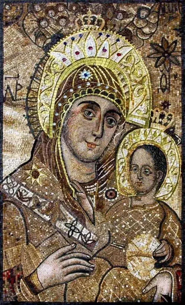 Vierge Marie Et Jesus Mozaique Mosaic - 120cm X 195cm (47" X 77") / With Frame