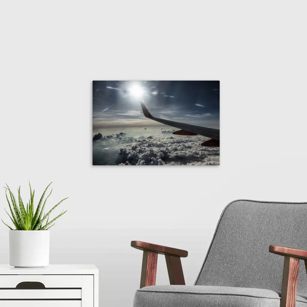 View From Airplane Window Above The Clouds