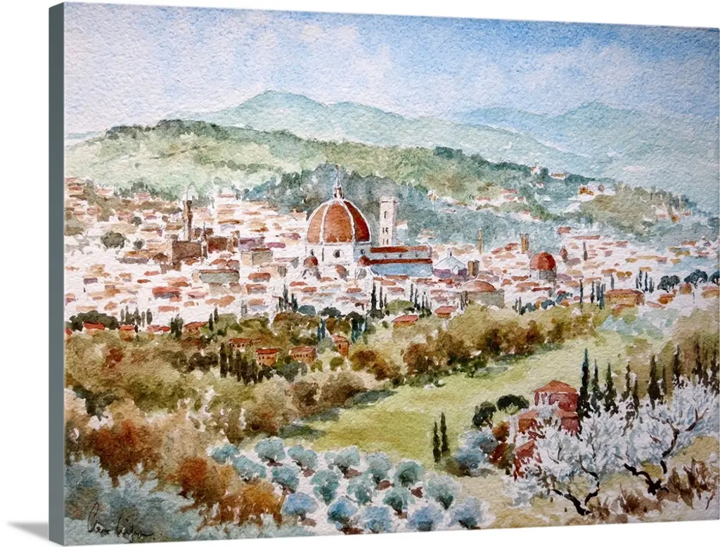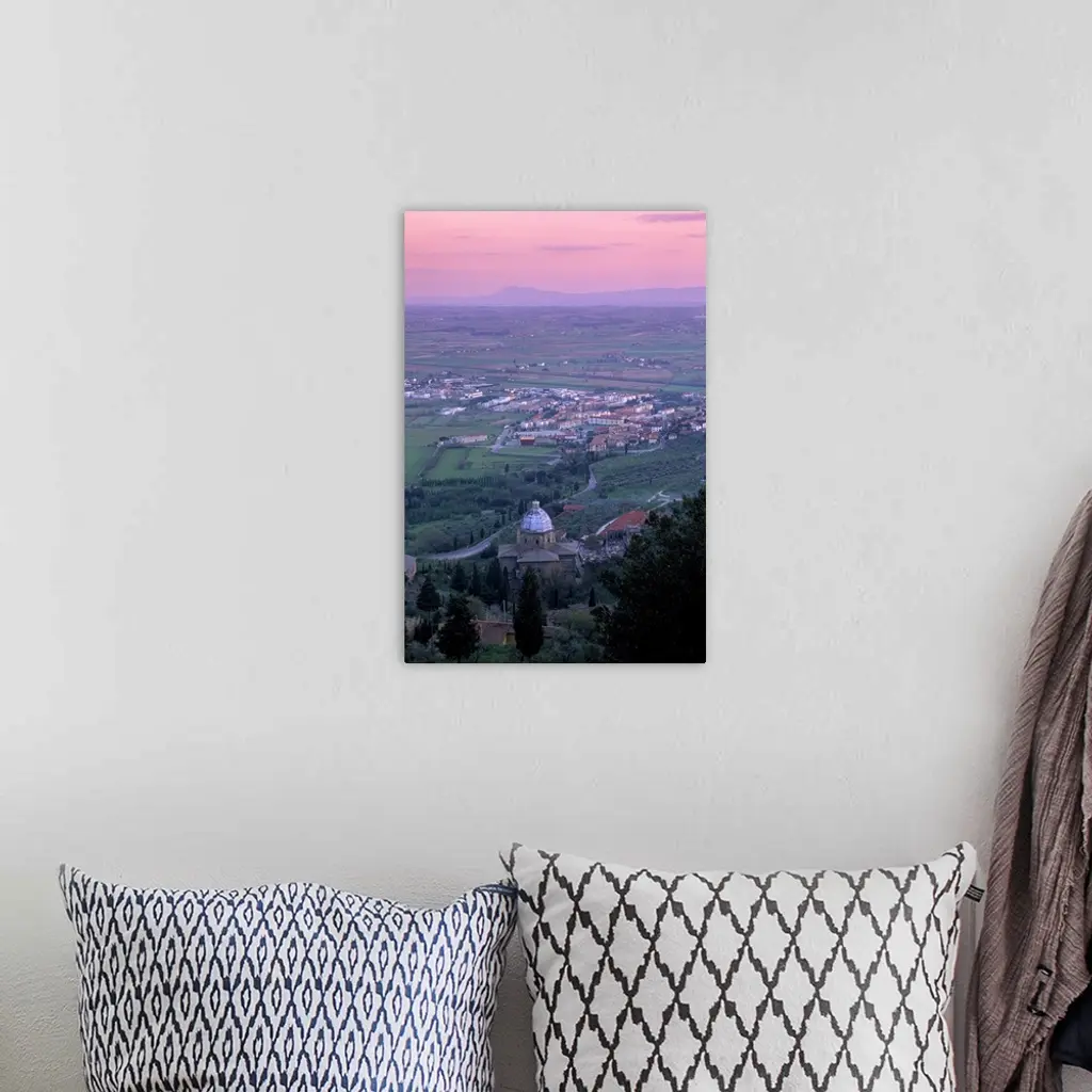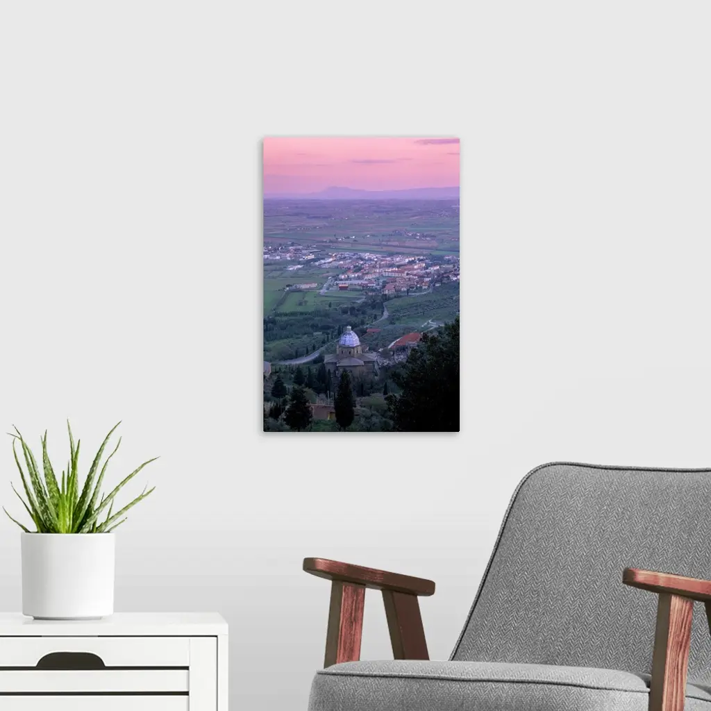 View from the town at sunset, Cortona, Tuscany, Italy, Europe wall art for home and office decor. Discover canvas art prints, photos, mural, big canvas art and framed wall art in GreatBigCanvas.com's varied collections.