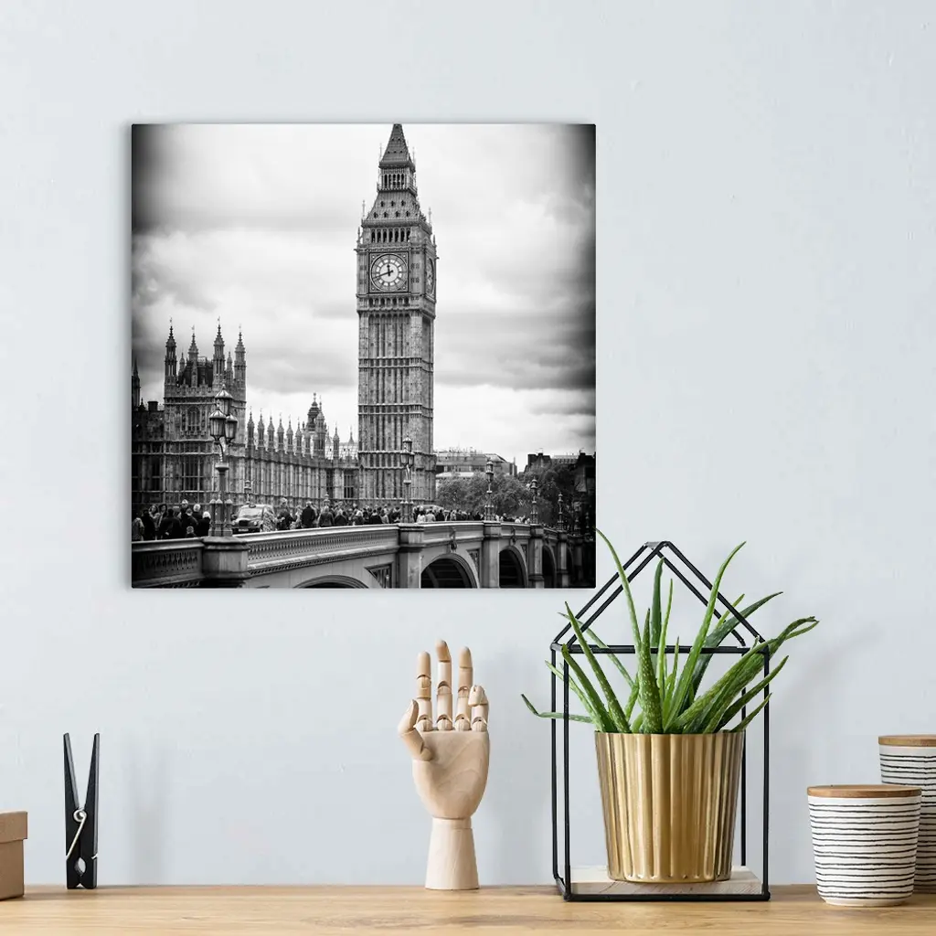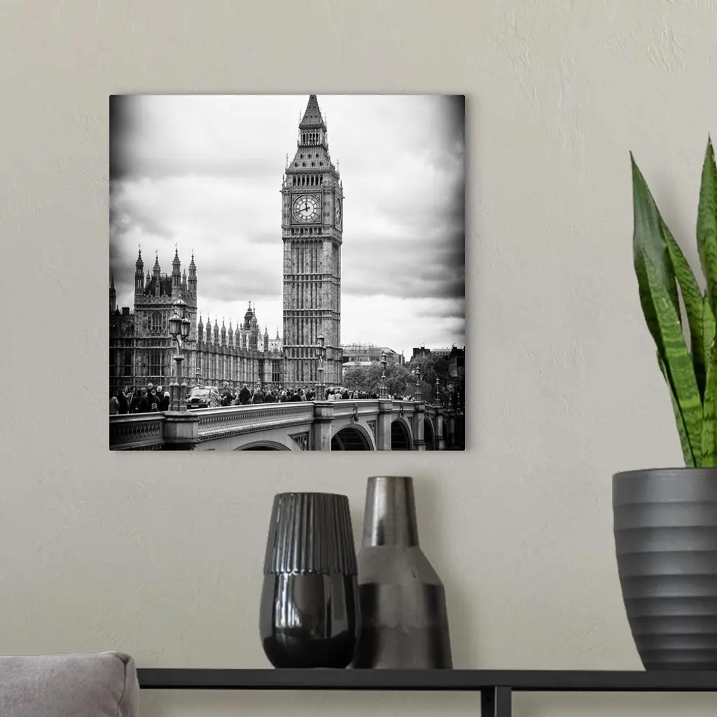 Black and white photo with dramatic lighting of the Big Ben clock tower.