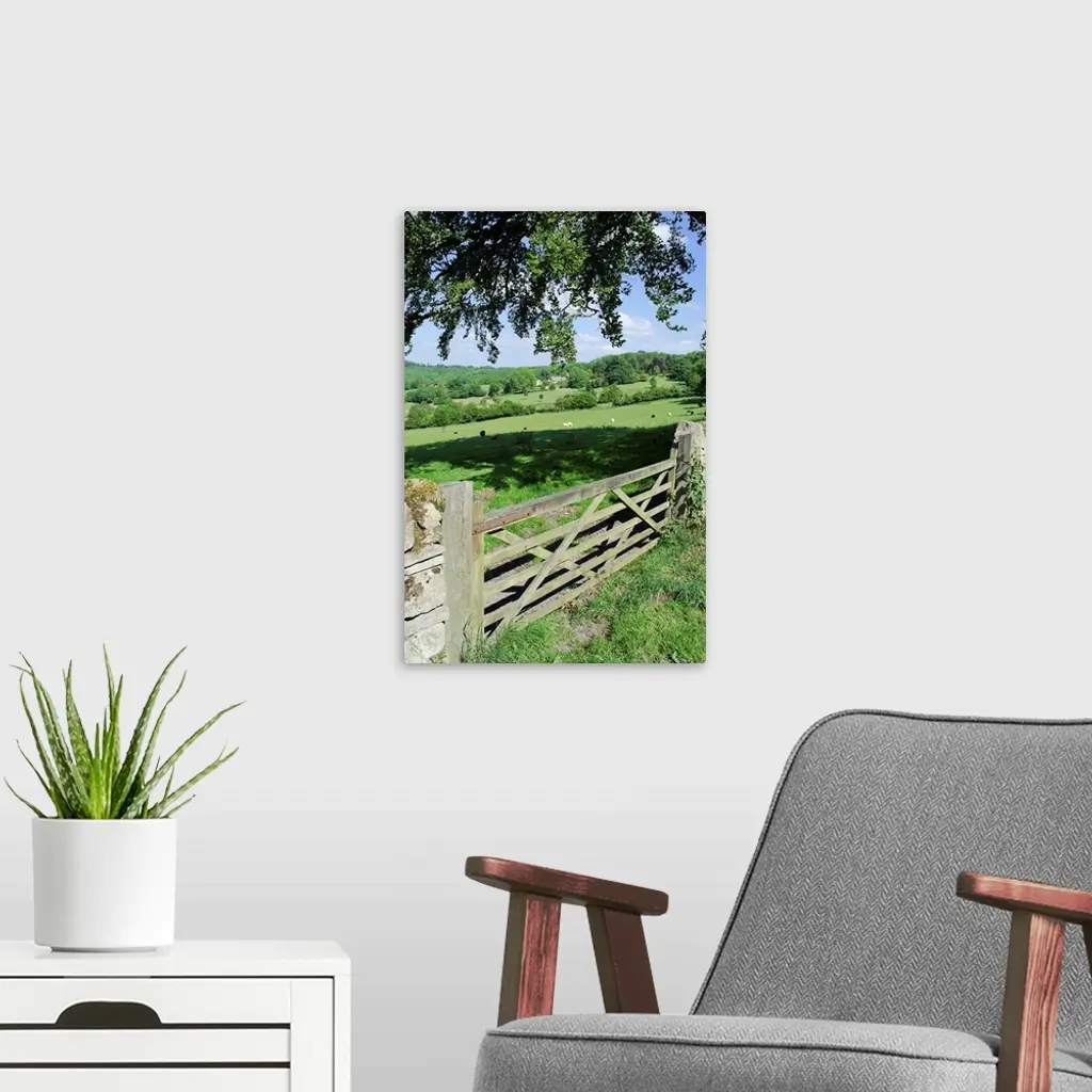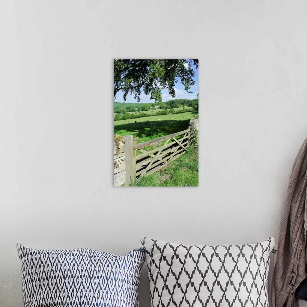 View of gate and farmland in english cotswolds. wall art for home and office decor. Discover canvas art prints, photos, mural, big canvas art and framed wall art in GreatBigCanvas.com's varied collections.