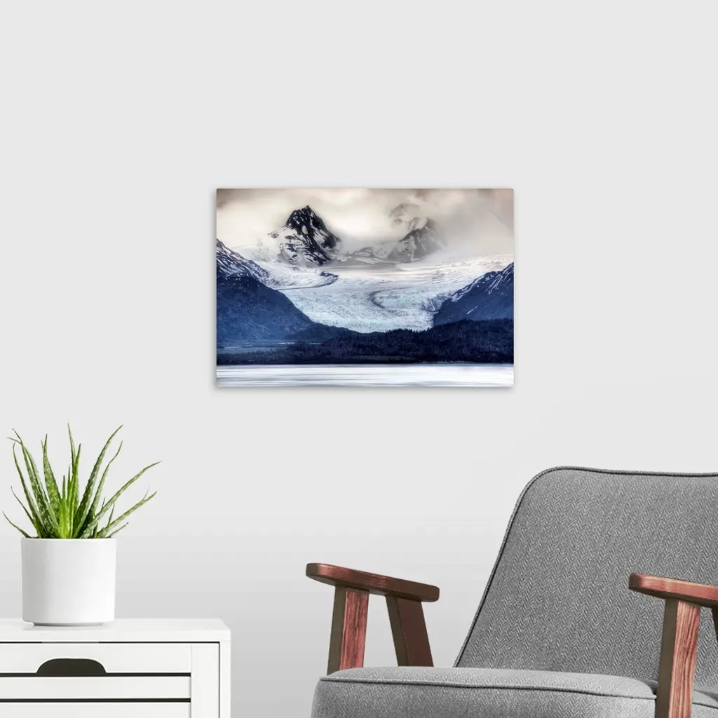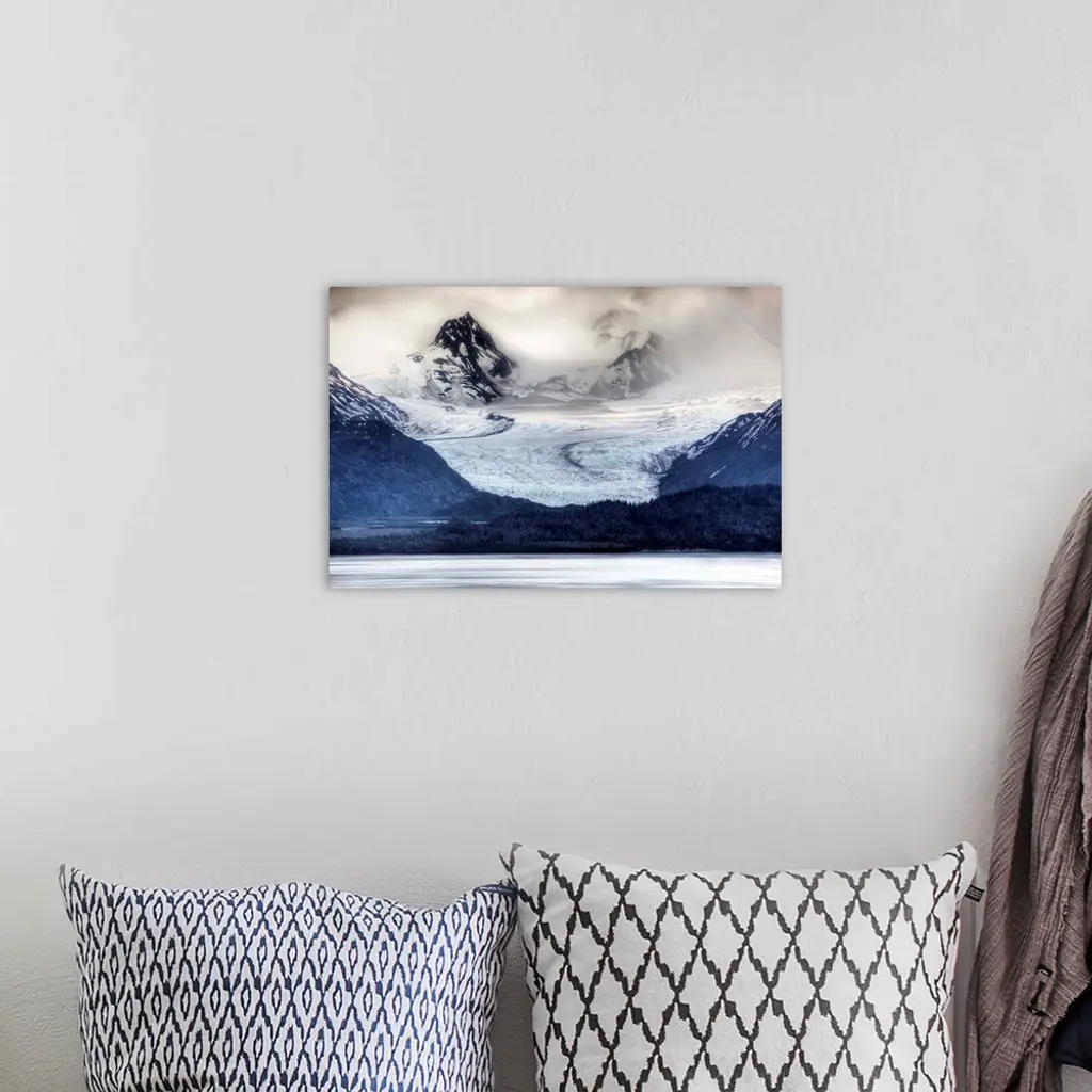 View of Grewingk Glacier flowing into Kachemak Bay, near Homer, Kenai Peninsula, Alaska wall art for home and office decor. Discover canvas art prints, photos, mural, big canvas art and framed wall art in GreatBigCanvas.com's varied collections.