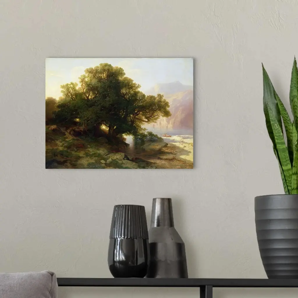 View of Lake Thuner, 1854 wall art for home and office decor. Discover canvas art prints, photos, mural, big canvas art and framed wall art in GreatBigCanvas.com's varied collections.