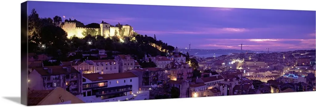 View Of Lisbon Castle From Miradouro De Sao Pedro De Alcantara At Dusk, Lisbon, Portugal