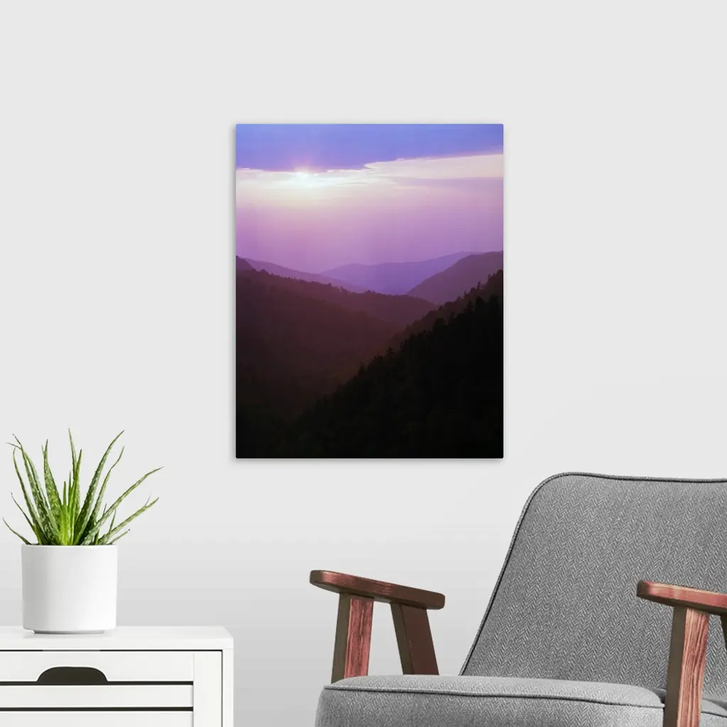 View Of Misty Smoky Mountains From Overlook, Sunset, Tennessee