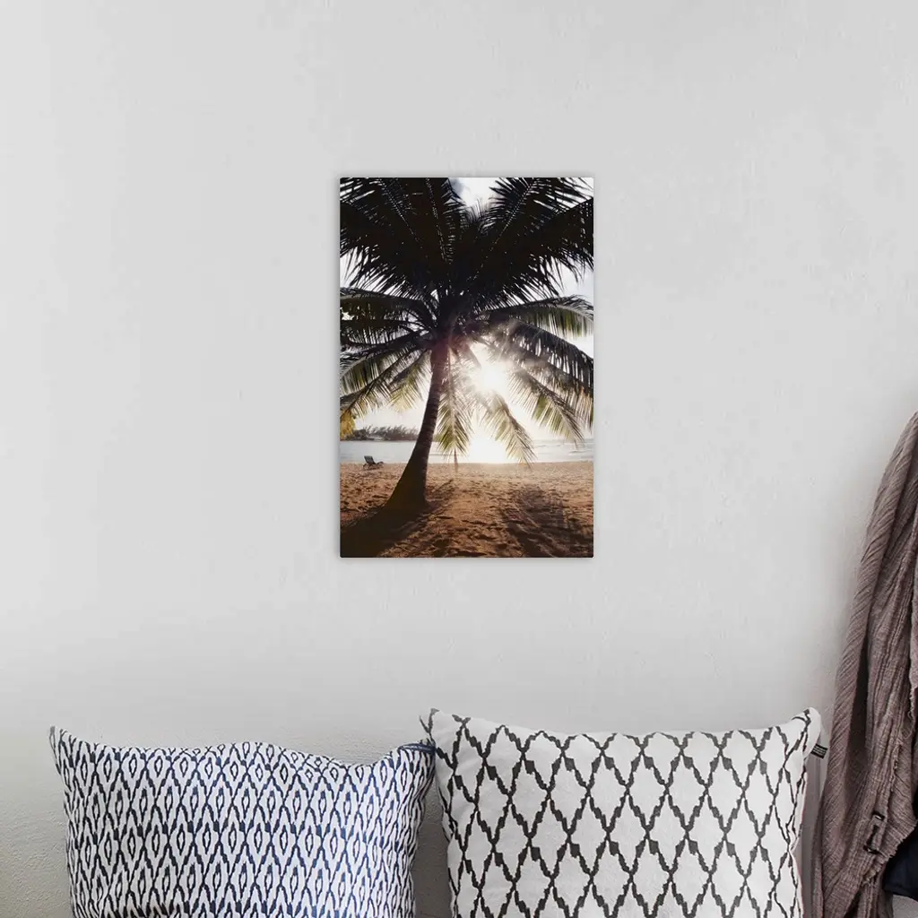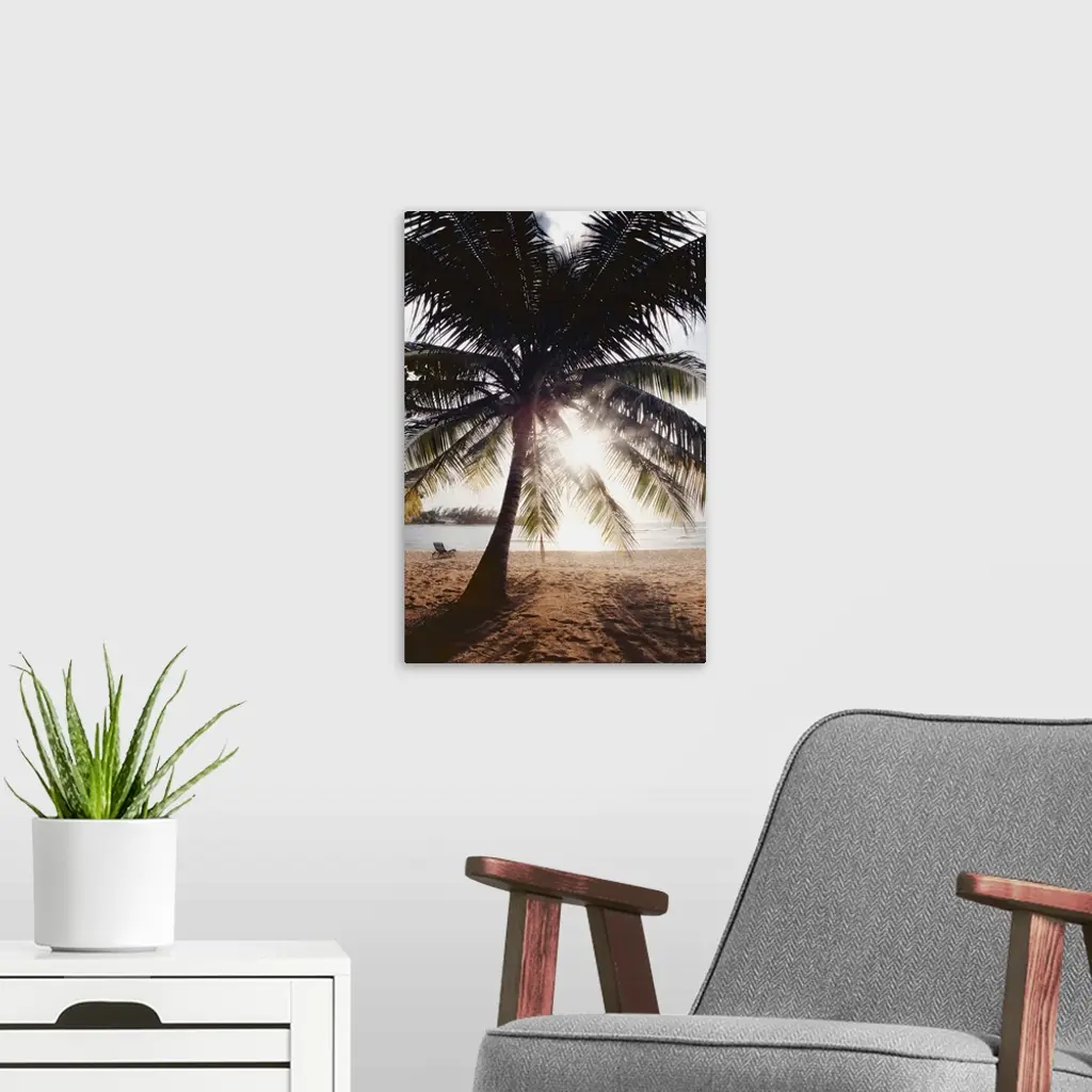 View Of Ocean And Beach Through Palm Tree, Caribbean wall art for home and office decor. Discover canvas art prints, photos, mural, big canvas art and framed wall art in GreatBigCanvas.com's varied collections.
