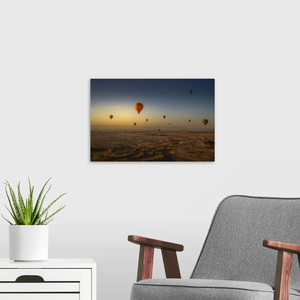View Of Other Balloons From Hot Air Balloon Over Luxor At Sunrise, Luxor, Egypt, Africa wall art for home and office decor. Discover canvas art prints, photos, mural, big canvas art and framed wall art in GreatBigCanvas.com's varied collections.