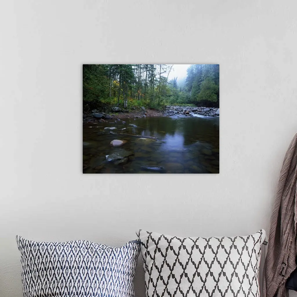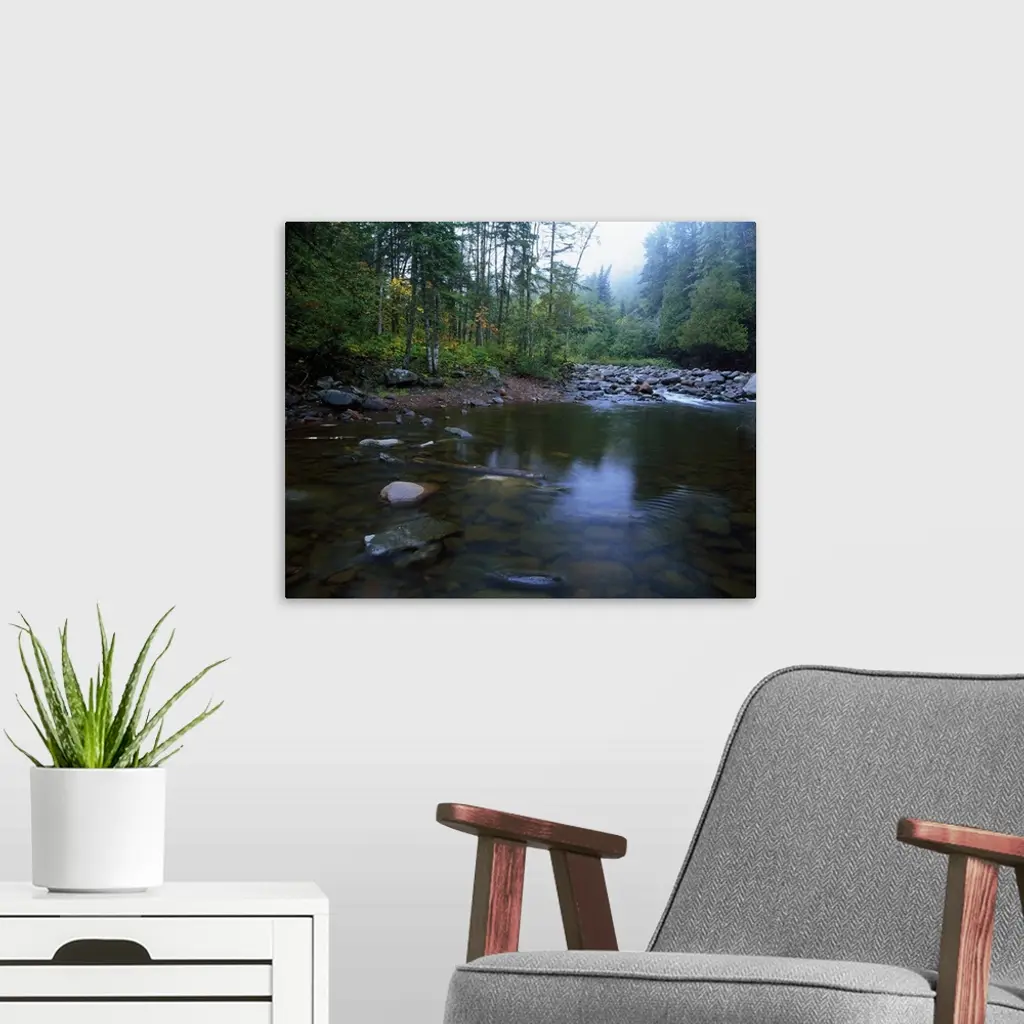 View of rocky Cascade River winding through forest, Cascade River State Park, Minnesota wall art for home and office decor. Discover canvas art prints, photos, mural, big canvas art and framed wall art in GreatBigCanvas.com's varied collections.