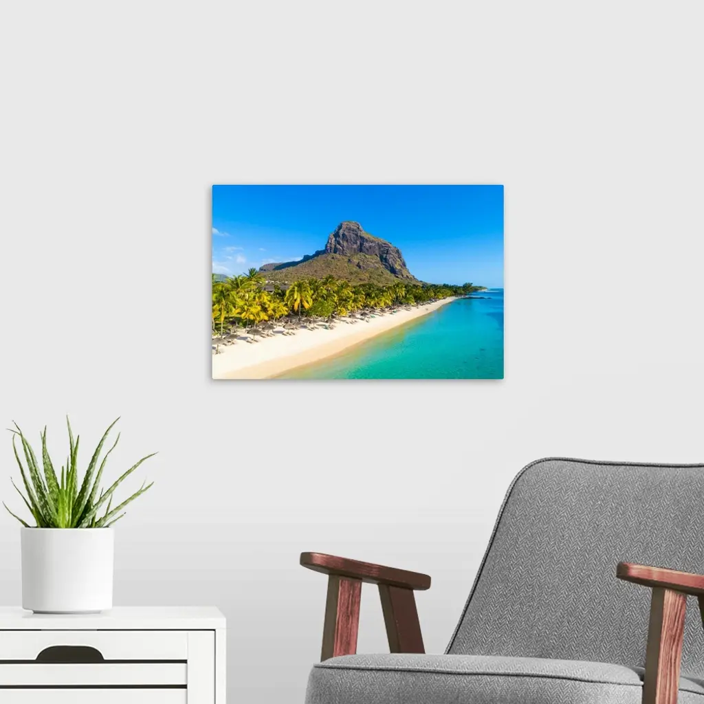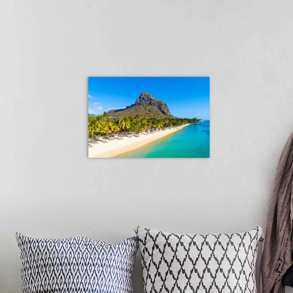 Aerial View Of The Beach Of The Beachcomber Paradis Hotel, Le Morne Brabant Peninsula, Black River (Riviere Noire), Mauritius (Pr).