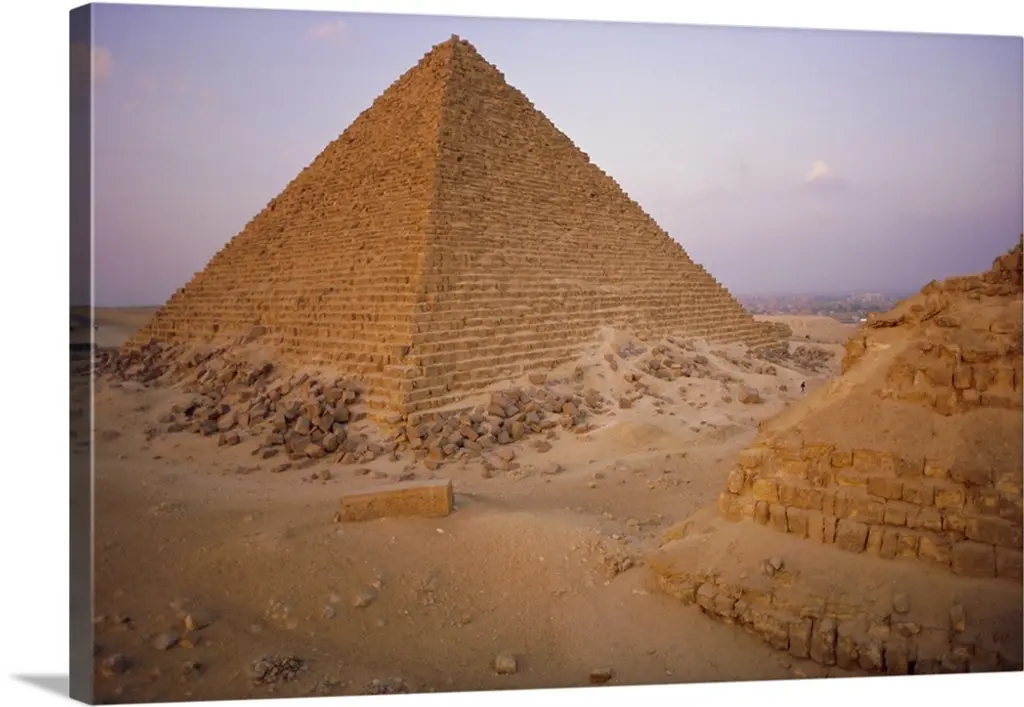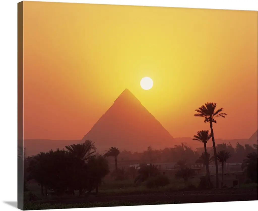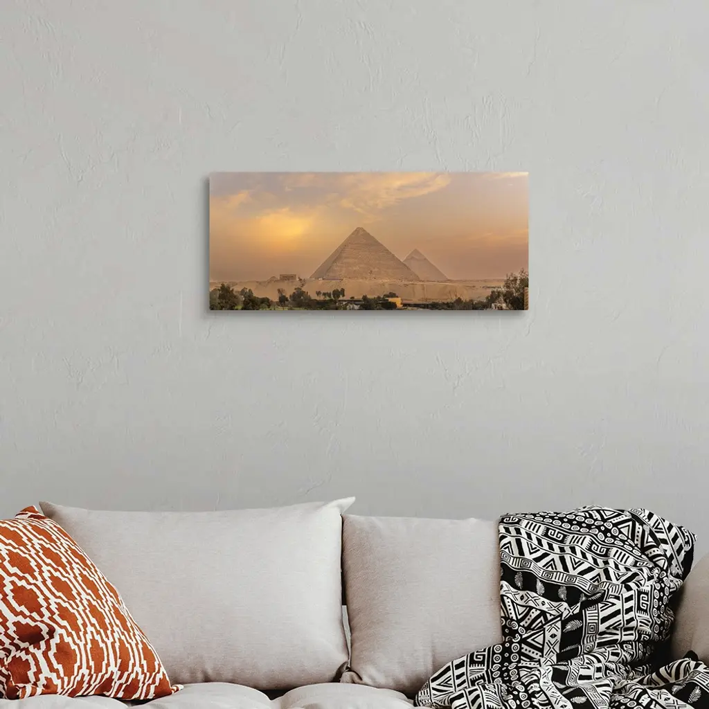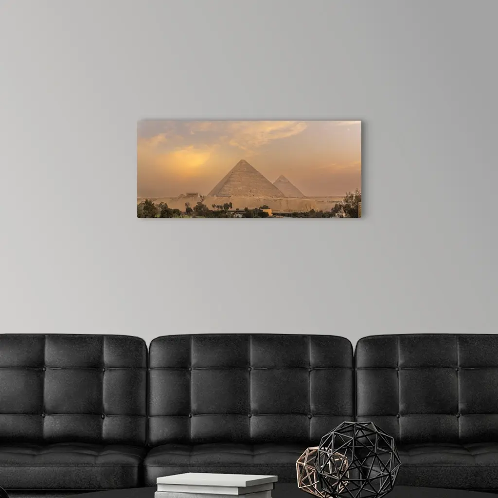 View Of The Giza Pyramids From Rooftop Terrace During Golden Hour, Giza, Cairo, Egypt
