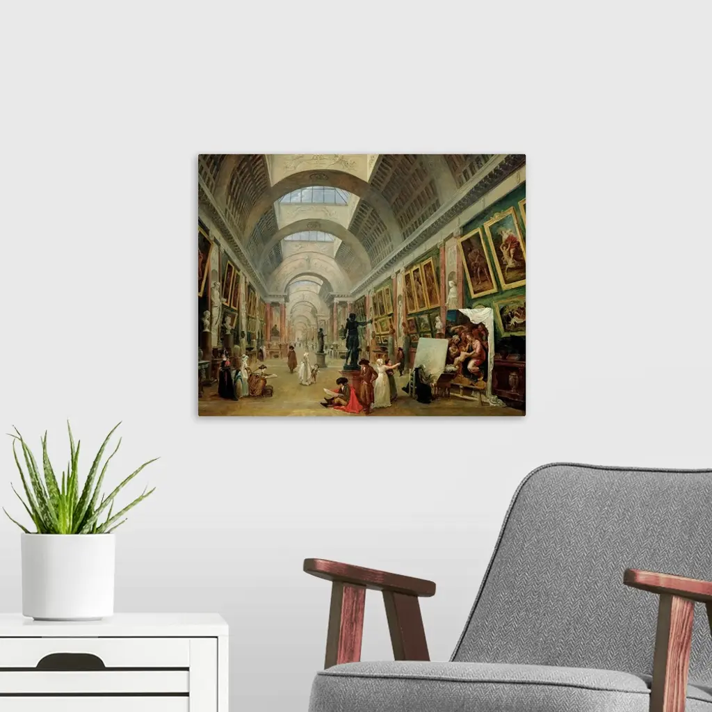 View of the Grand Gallery of the Louvre, 1796 wall art for home and office decor. Discover canvas art prints, photos, mural, big canvas art and framed wall art in GreatBigCanvas.com's varied collections.