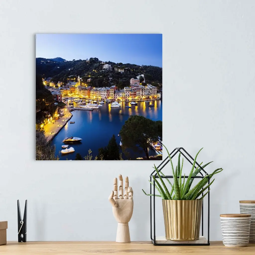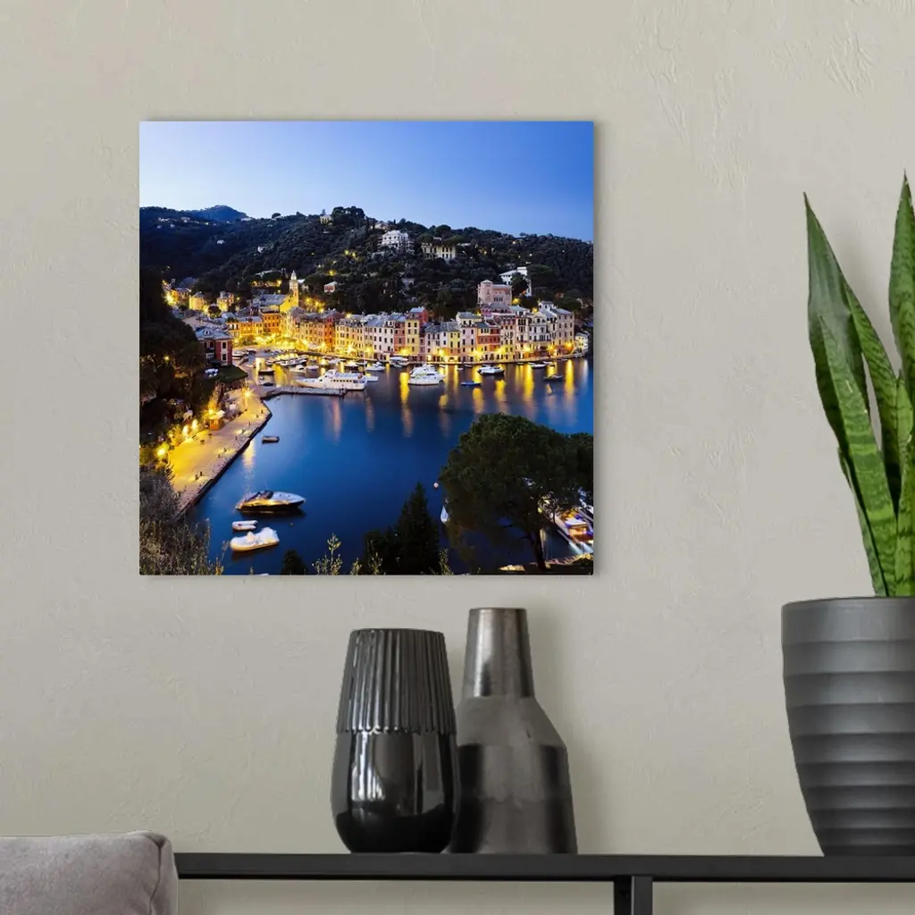 View of the harbour at dusk, Portofino, Liguria, Italy wall art for home and office decor. Discover canvas art prints, photos, mural, big canvas art and framed wall art in GreatBigCanvas.com's varied collections.
