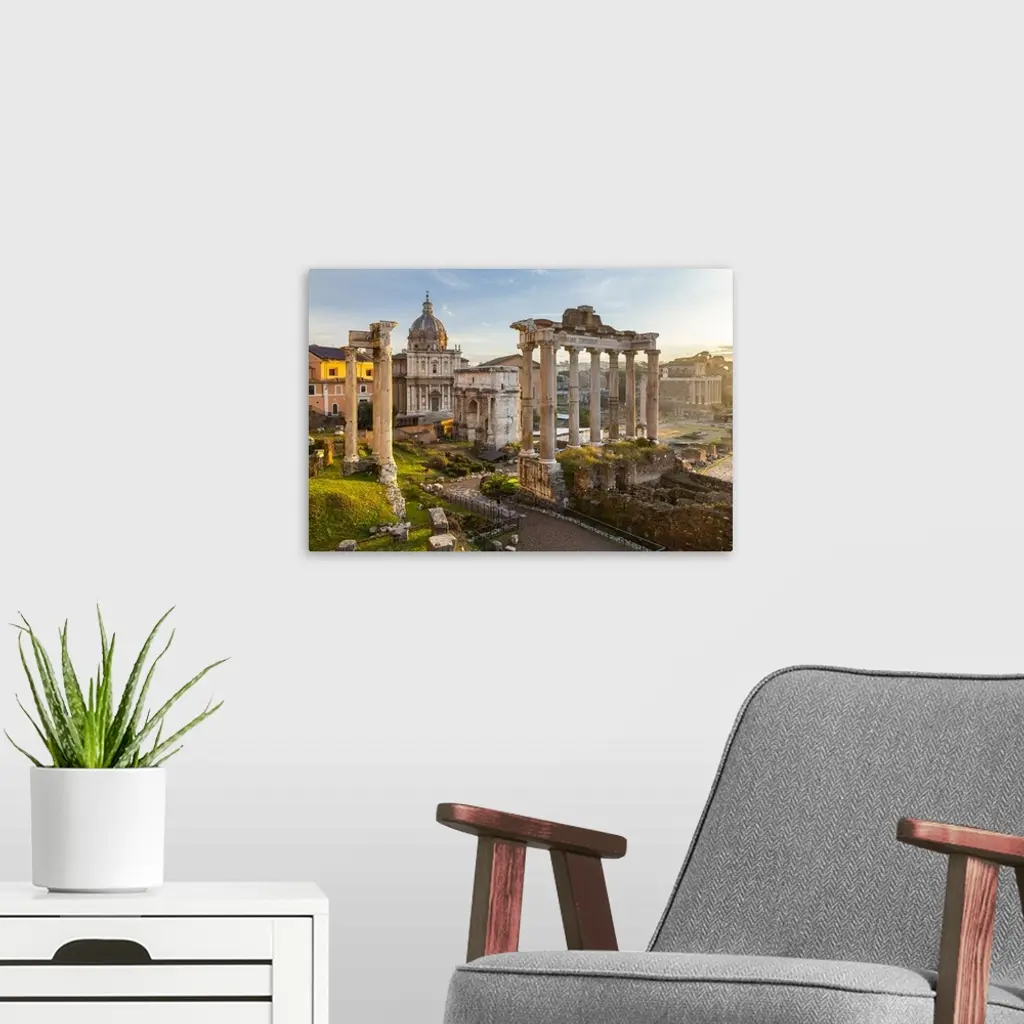 View Of The Ruins Of Fori Imperiali From The Campidoglio At Dawn, Rome, Italy