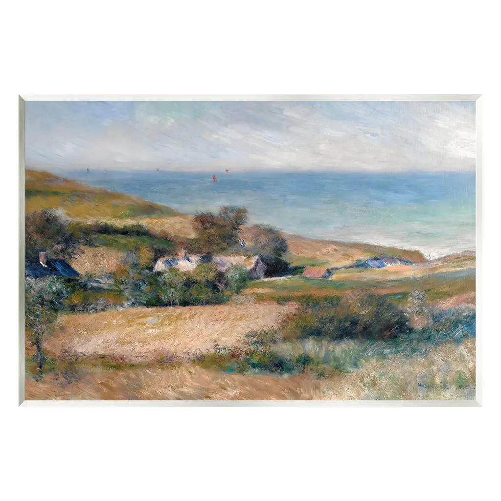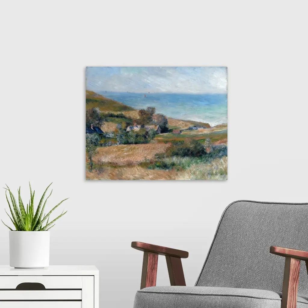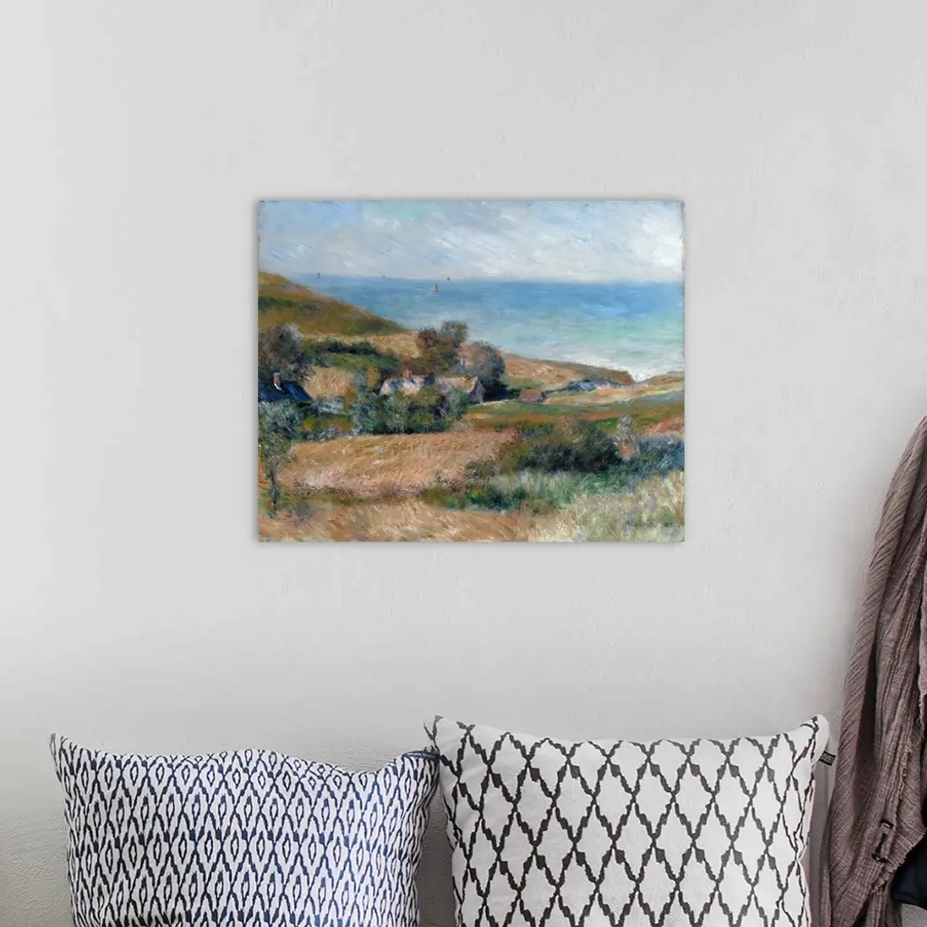 While a guest at the country house of Paul Berard, Renoir was captivated by the seaside views. This area of the Normandy coast, notable for its steep cliffs and weather-swept panoramas, also attracted Monet during the early 1880s. Renoir painted this scene out-of-doors, working quickly to capture the landscape's salient features before the lighting conditions changed.
