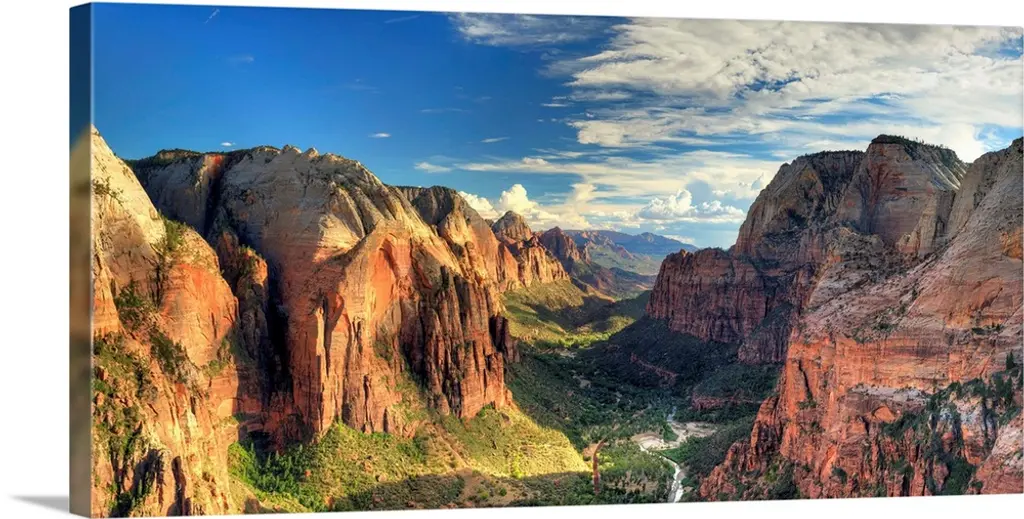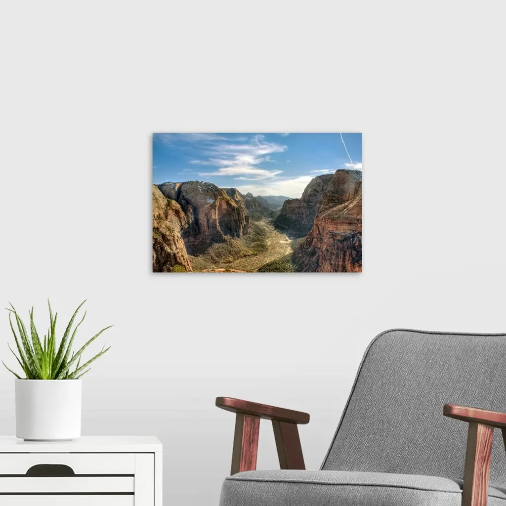 View of Zion Canyon from top of Angels Landing. wall art for home and office decor. Discover canvas art prints, photos, mural, big canvas art and framed wall art in GreatBigCanvas.com's varied collections.