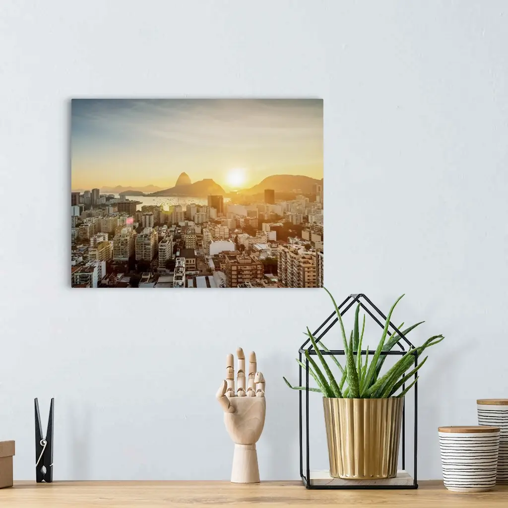 View over Botafogo towards the Sugarloaf Mountain at sunrise, Rio de Janeiro Brazil