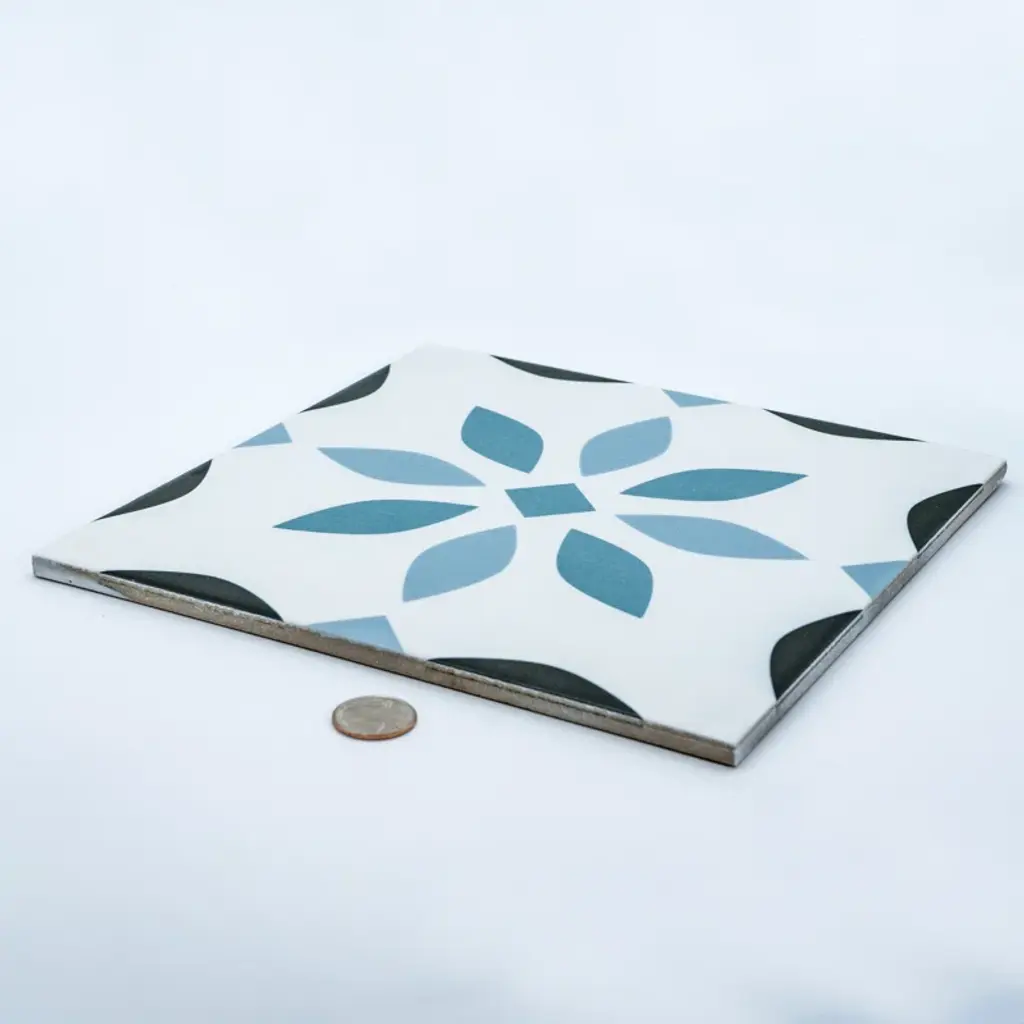 This playful geometric pattern works well in both contemporary and traditional environments. It can be enjoyed both indoors and outdoors for many years. This tile will add a one of a kind look to any setting.