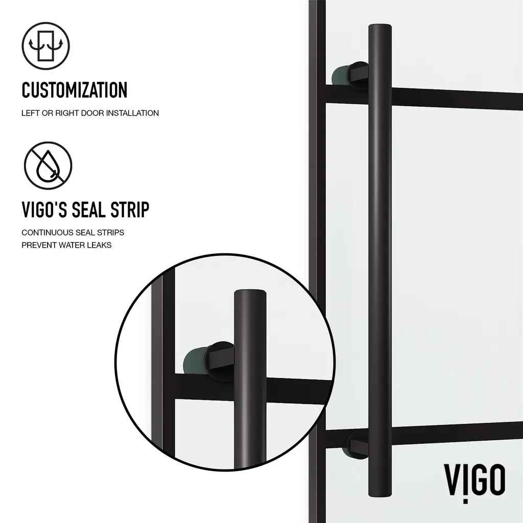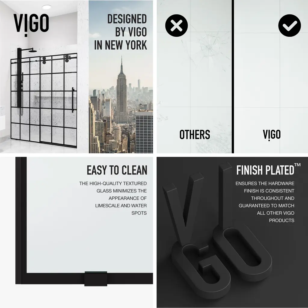 Vigo Elan 56" To 60" W X 74" H Frameless Sliding Shower Door In Matte Black - Matte Black