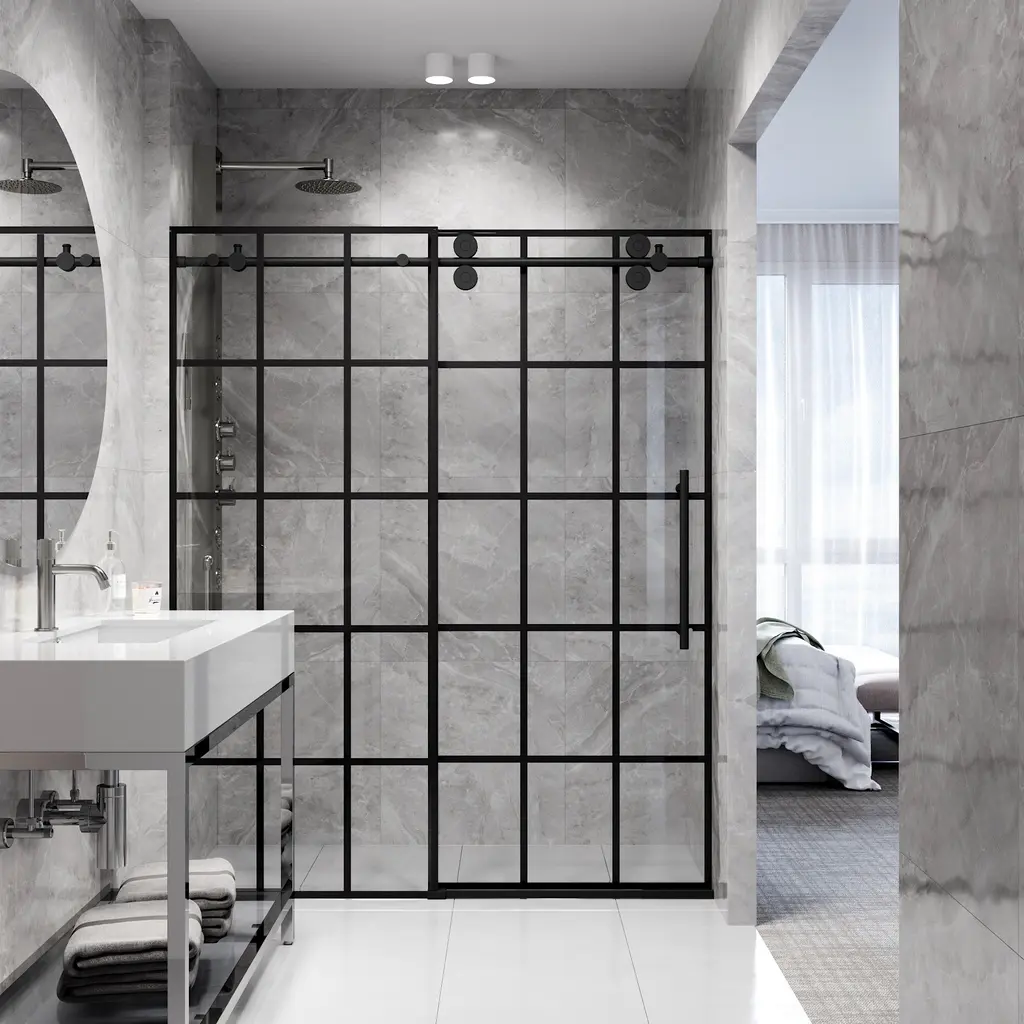 VIGO Elan is a frameless tub door with a grid pattern glass inspired by a minimalistic design. The smooth sliding rollers grant a modern look while providing a quieter shower experience and easy walk-in entry. The top rollers, designed using VIGO's proprietary RollerDisk Technology, ensure a lifetime of structural stability. The full-length seal strips prevent water leaks and keep your bathroom floors dry. Elan's fluted tempered glass panels are durable and highly safe, making them ideal for everyday use. The included components and simple instructions allow for an easy DIY-style installation at your home.