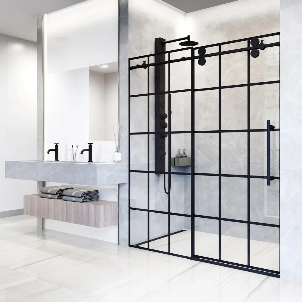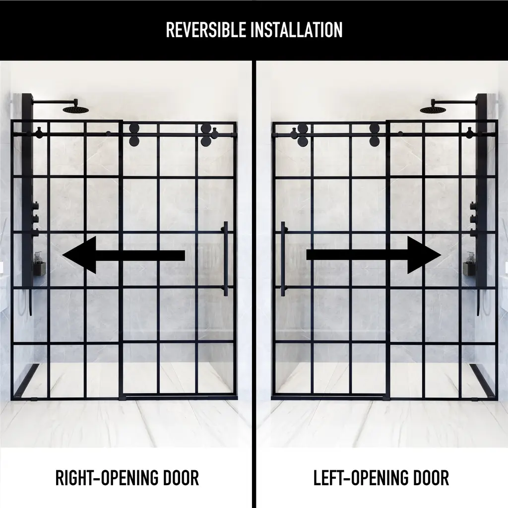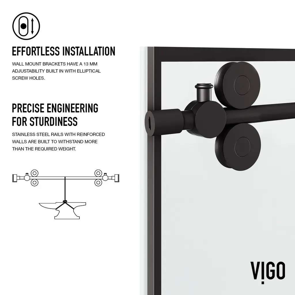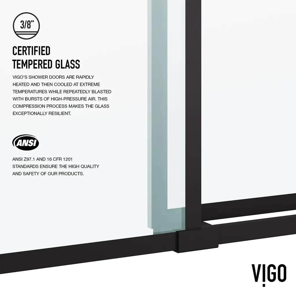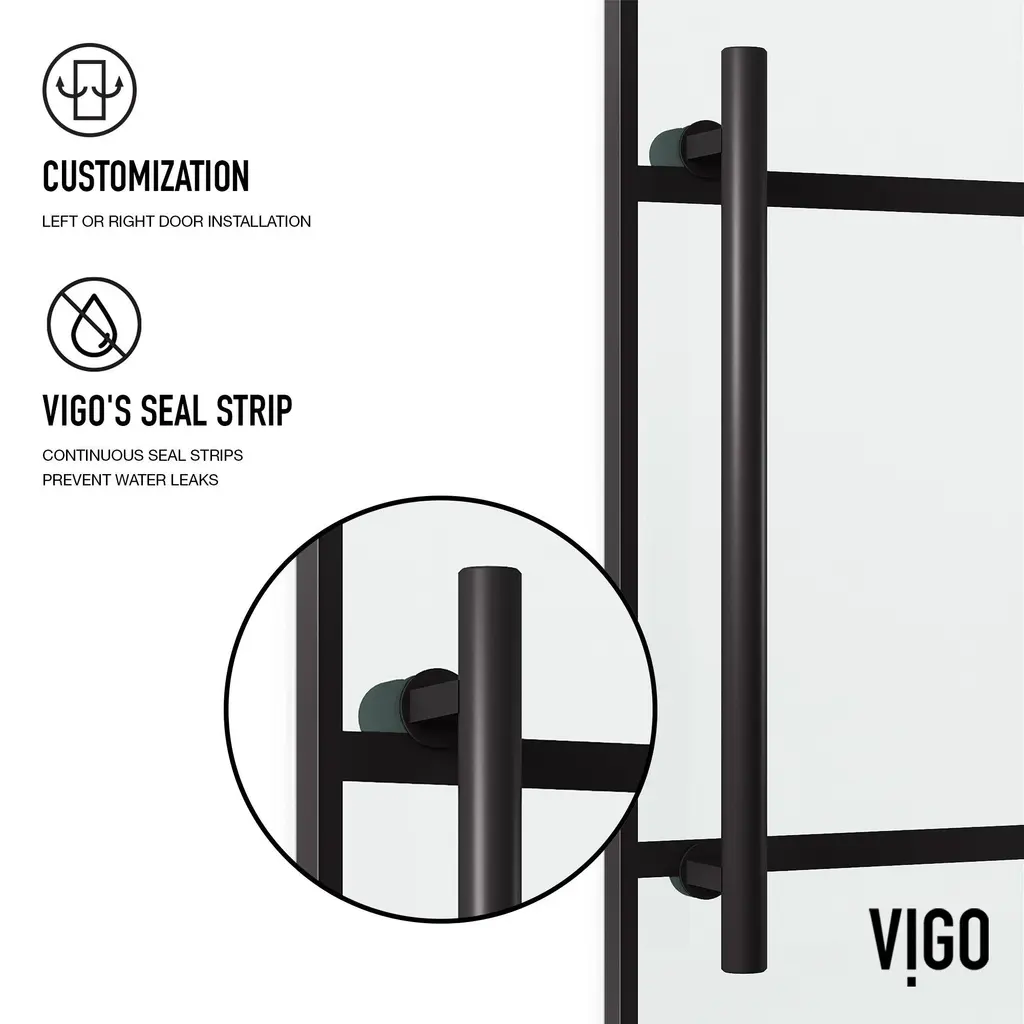 Vigo Elan 68" To 72" W X 74" H Frameless Sliding Shower Door In Matte Black - Matte Black Grid