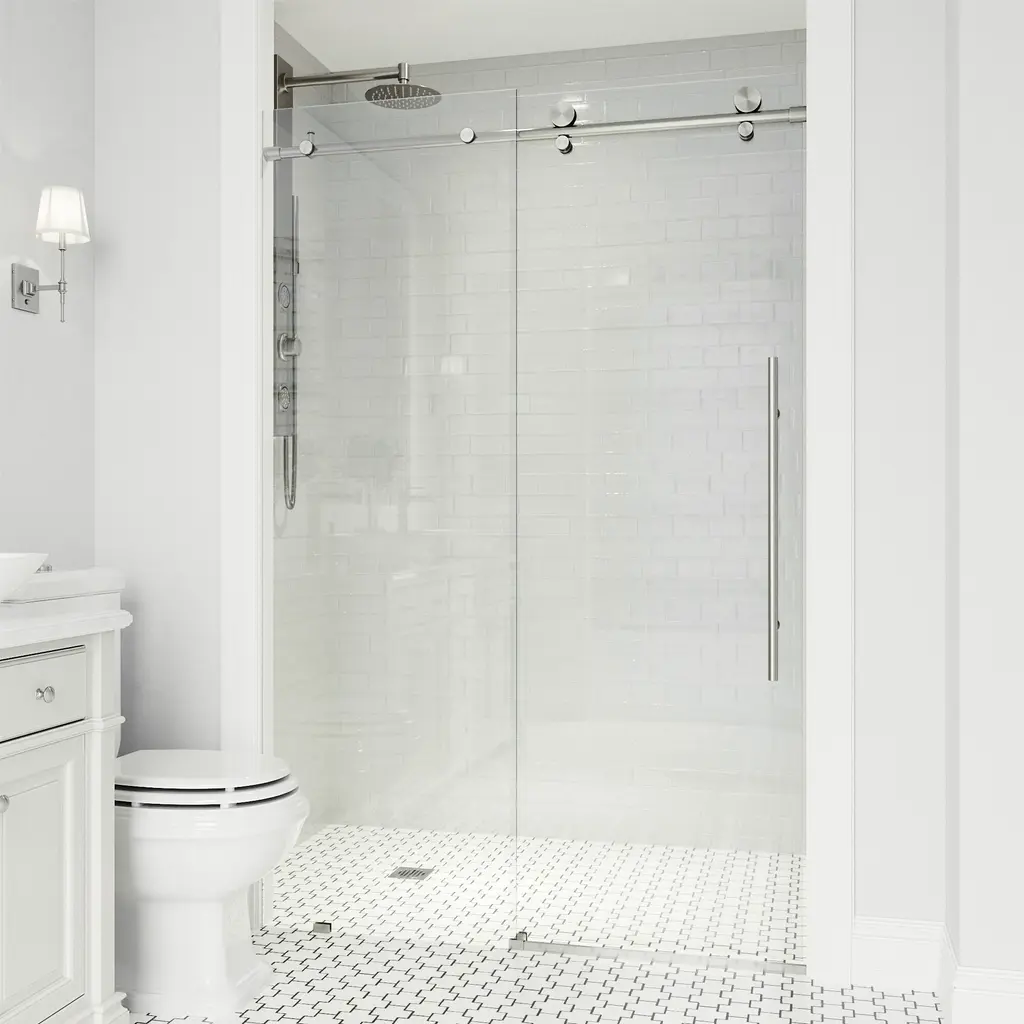 Vigo Elan E-Class Frameless Sliding Shower Door - 52" To 56" W X 76" H - Stainless Steel
