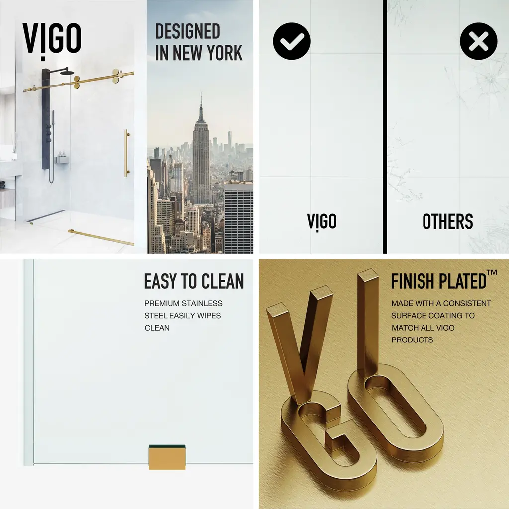 Vigo Elan Frameless Sliding Shower Door - 68" To 72" W X 74" H - Matte Brushed Gold