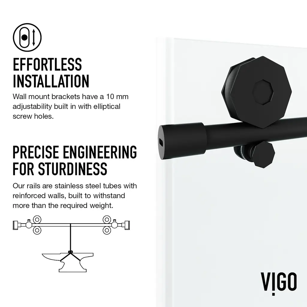Vigo Elan Hart Frameless Sliding Shower Door - 56" To 60" W X 76" H - Matte Black