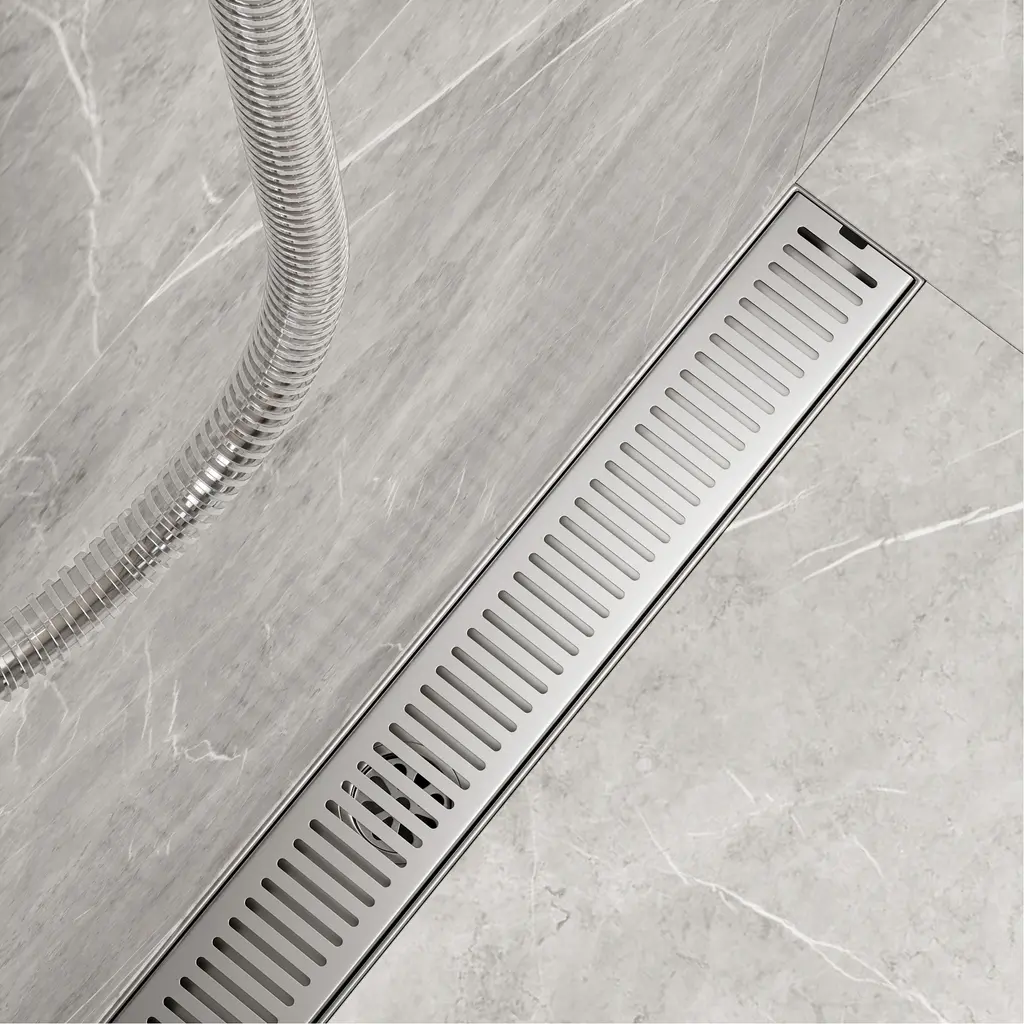 Enhance your shower experience with a linear shower drain by VIGO. Its attractive, sloped channel enables seamless and complete water drainage, while the rectangular drain grate prevents clogging. Its premium hardware finish allows easy cleaning and ensures long-lasting durability. Upgrade your bathroom shower experience with this rectangle shower drain from VIGO. Features: