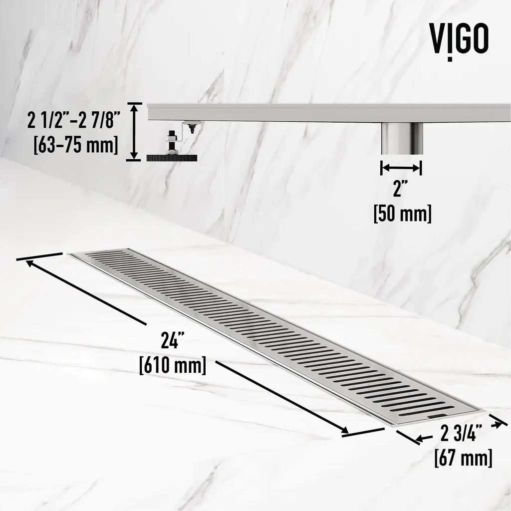 Vigo Elan Linear Shower Drain - 24" L - Brushed Nickel