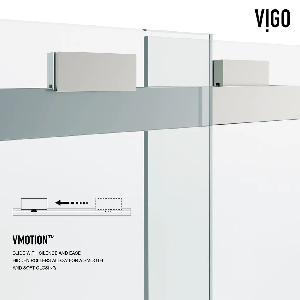 Vigo Houston Frameless Sliding Door - Shower Door, 56" To 60" W X 76" H - Stainless Steel