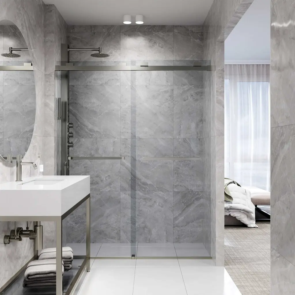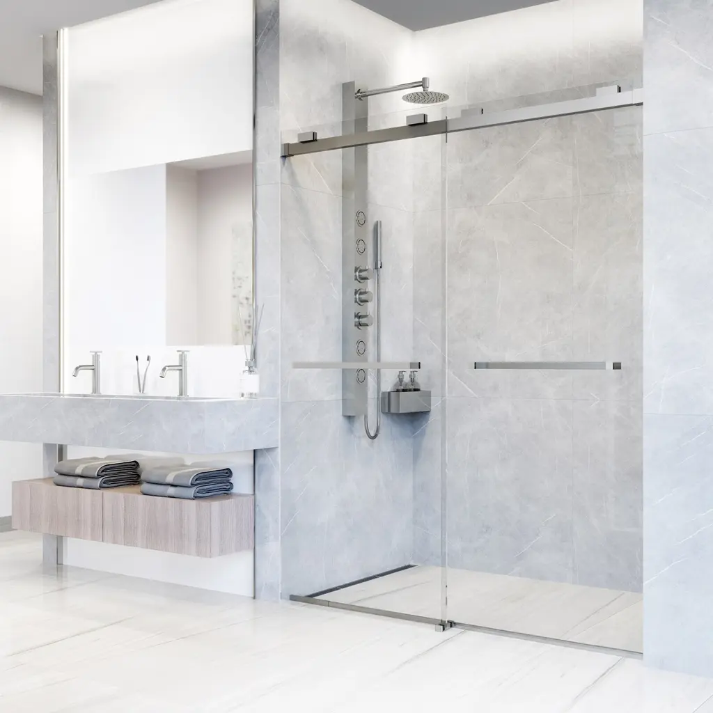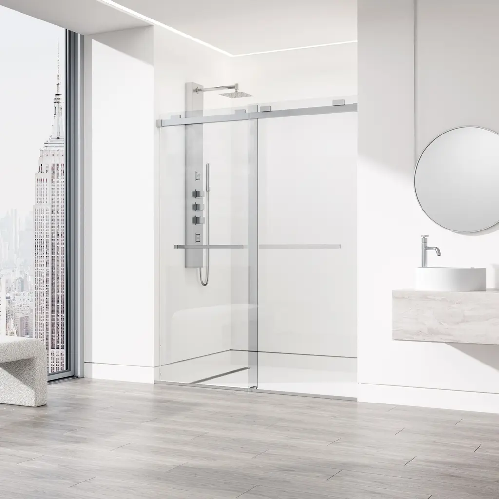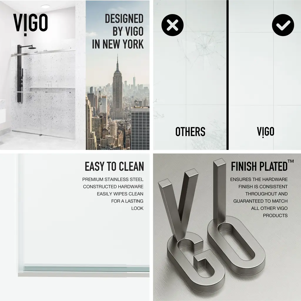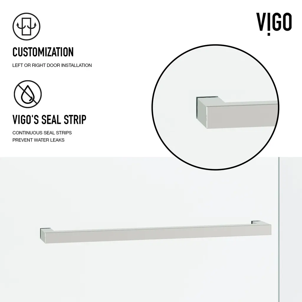 The Houston by VIGO is a frameless door inspired by a minimalistic design. Its smooth double-sliding mechanism allows you to enjoy a quieter shower experience and grants an easy entry. The full-length seal strips prevent water leaks and keep your bathroom floors dry. Houston's tempered glass panels are durable and highly safe, making them ideal for everyday use. The included components and simple instructions allow for an easy DIY-style installation at your home.