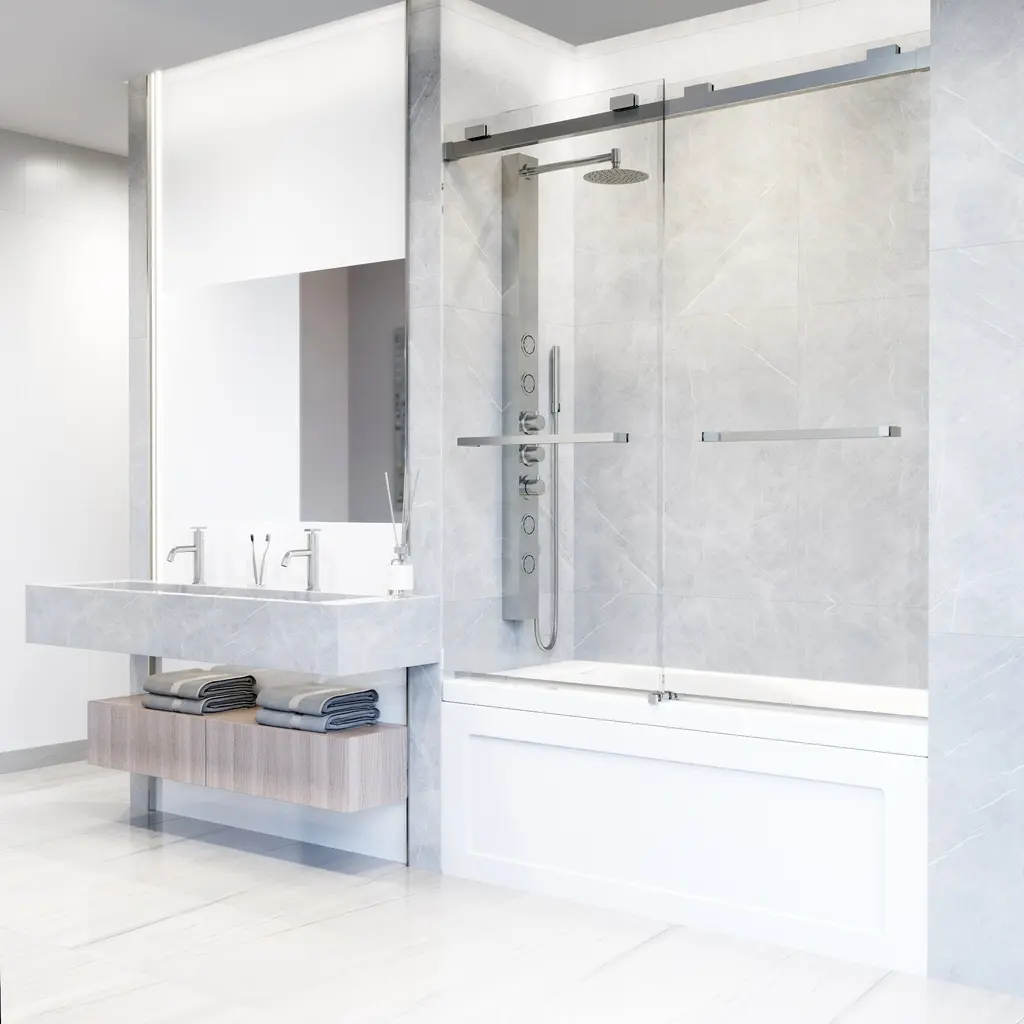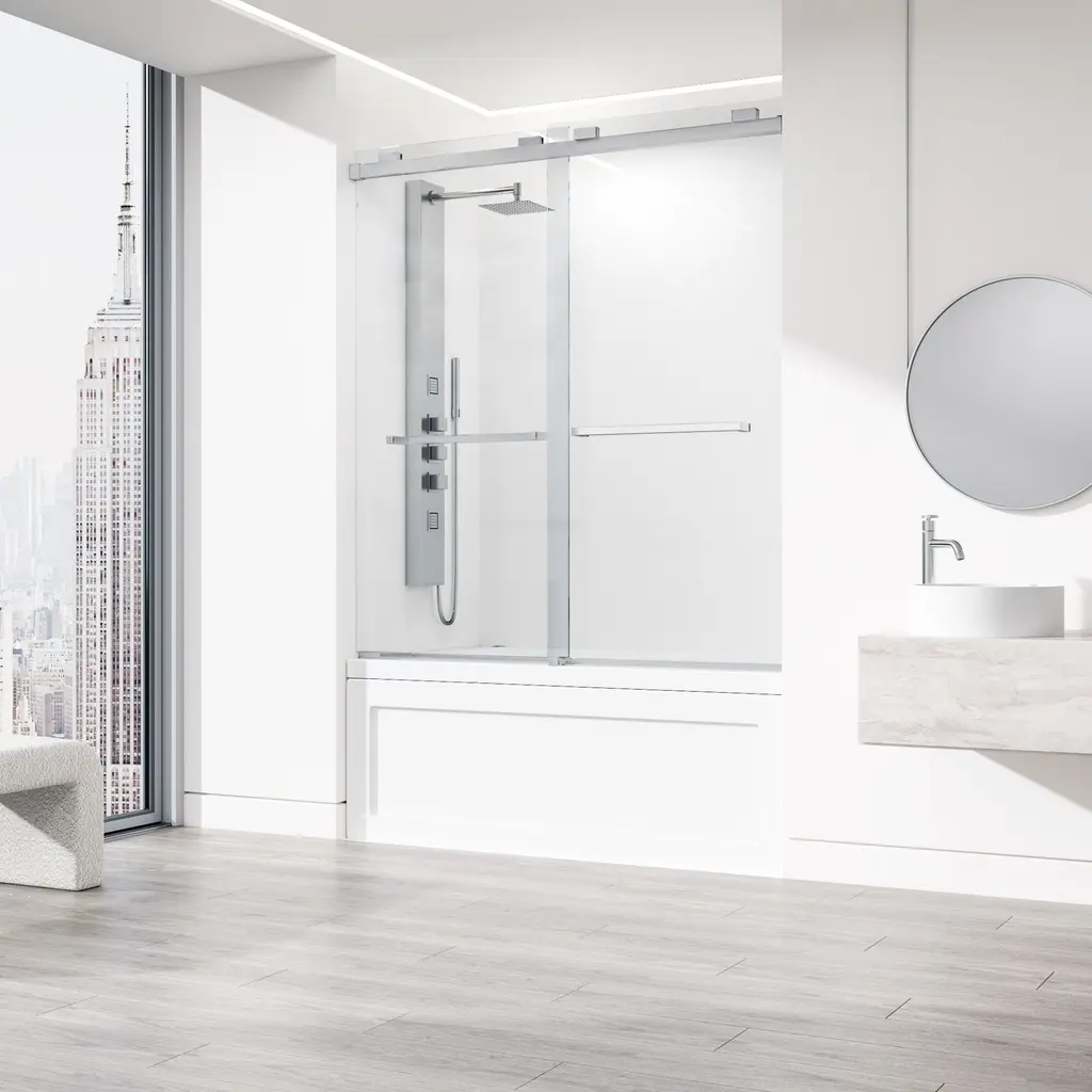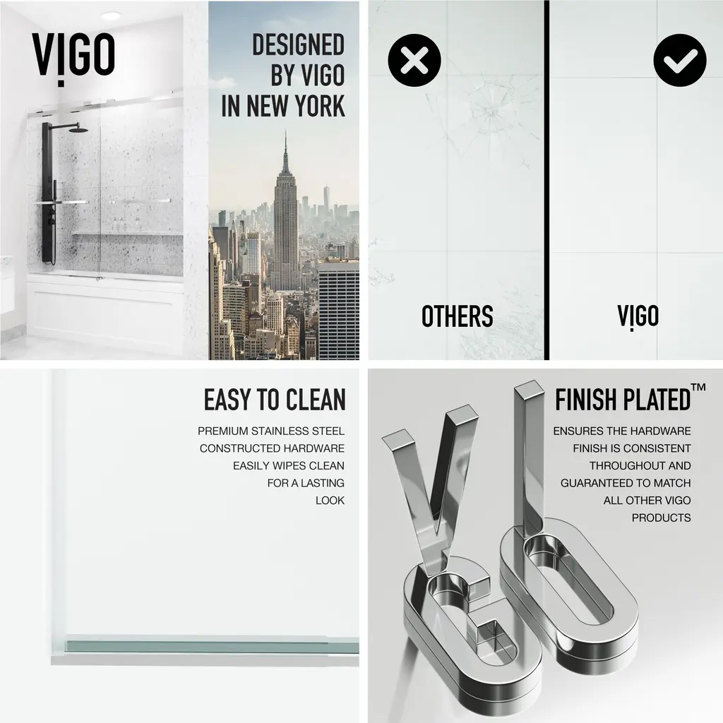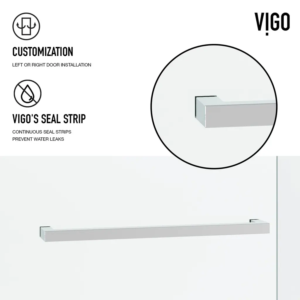 The Houston by VIGO is a frameless door inspired by a minimalistic design. Its smooth double-sliding mechanism allows you to enjoy a quieter shower experience and grants an easy entry. The full-length seal strips prevent water leaks and keep your bathroom floors dry. Houston's tempered glass panels are durable and highly safe, making them ideal for everyday use. The included components and simple instructions allow for an easy DIY-style installation at your home.