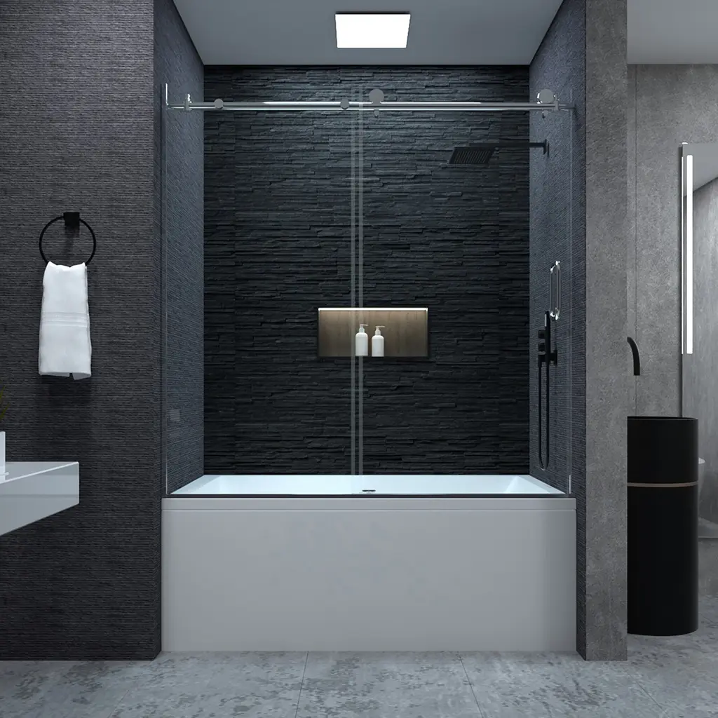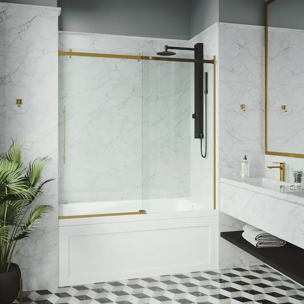 With its unique sliding system and sleek hardware, the VIGO Luca Frameless Sliding Tub Door adds a modern, streamlined look to your bathroom. Features premium tempered glass and highest quality 304-series stainless steel hardware components for optimal durability. This tub door features built-in adjustability for effortless installation. To bring a custom finish to your bathroom, this door can be installed to slide open left or right.VIGO VG6043CL6058 Features:VIGO VG6043CL6058 Specifications: