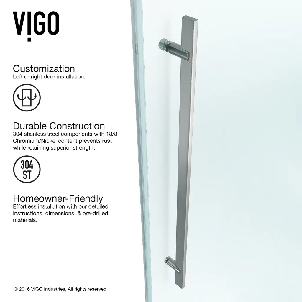 Vigo Luca 78-3/4" High X 60" Wide Sliding Frameless Shower Door - Chrome