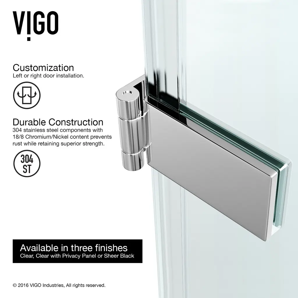 Vigo Soho 24" To 25" W X 71" H Frameless Hinged Shower Door In Chrome - Clear