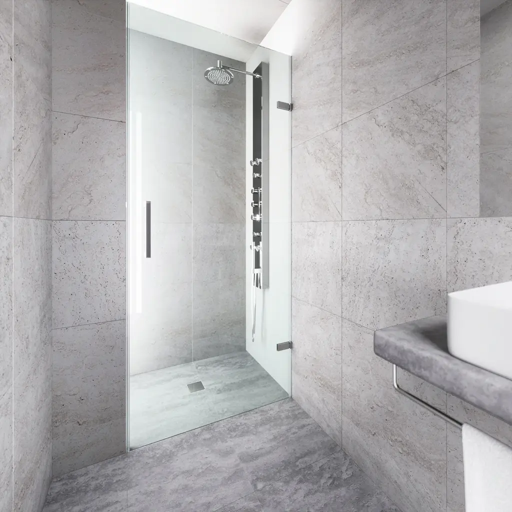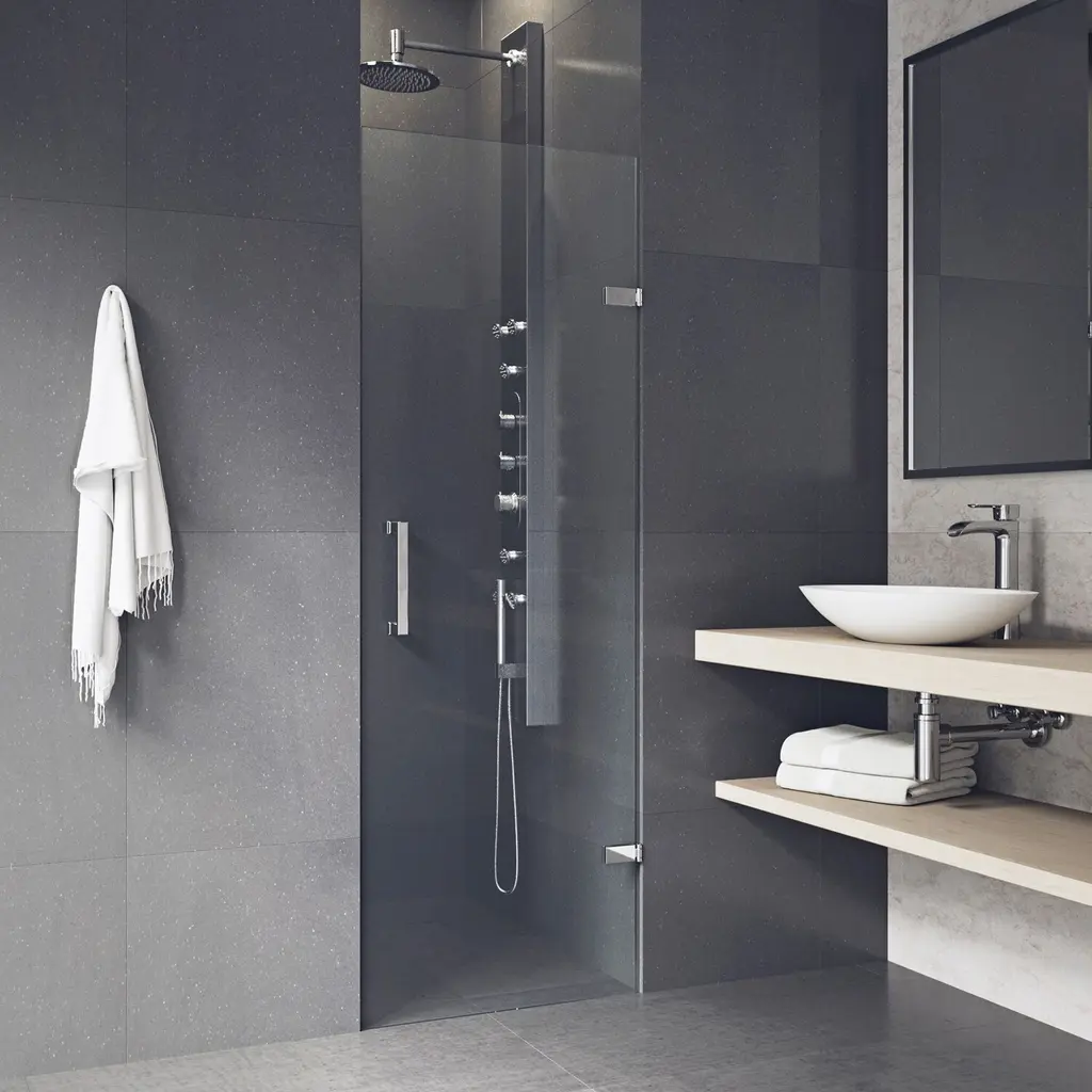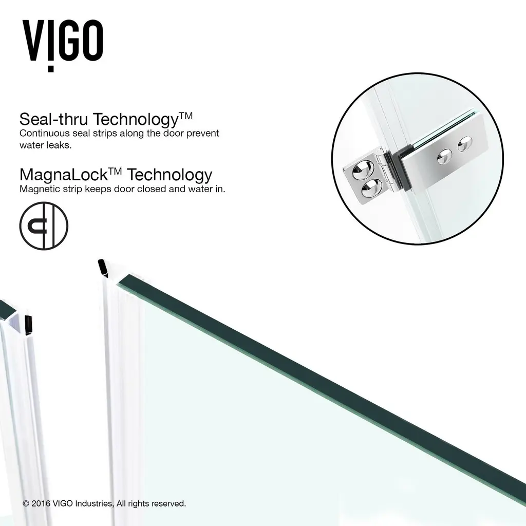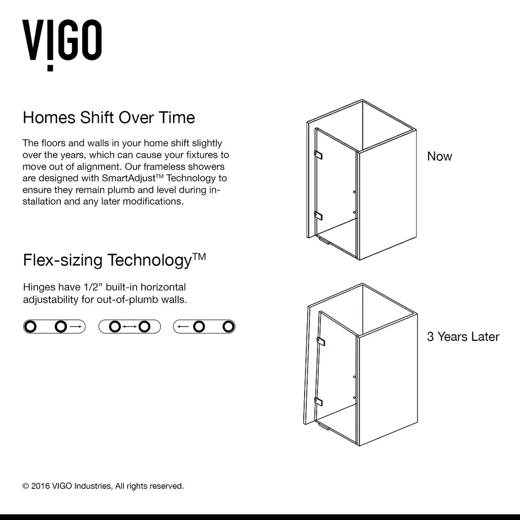 VIGO presents the Soho Frameless Hinged Shower Door, where luxurious hardware meets the durability of tempered glass. The hinged door pivots outwards and supports either a left-side or right-side opening installation. Soho features MagnaLockTM technology, a full-length magnetic catch that keeps the door tightly closed. A single water deflector redirects water towards the inside of the shower, and continuous seal strips along the door prevent water from leaking out. Premium stainless steel hardware with a 7-layered finish resists corrosion, keeping the metal components like-new for years. The simple instructions allow for an easy DIY-style installation at home.