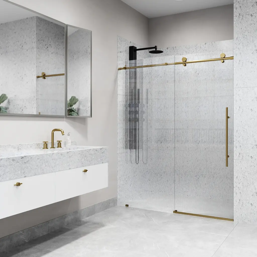 The VIGO Elan E-class is a beautiful Frameless Sliding Shower Door. Introduce a modern aesthetic to your bathroom with its premium stainless steel construction and eye-catching Roller Disk™. Crafted with tempered glass and durable stainless steel hardware, Elan E-class will be a long-lasting component of your home. The glass door supports only a right-side opening installation. The single water deflector redirects water toward the inside of the tub, and the full-length seal strips make the bathtub waterproof. The simple instructions allow for an easy, DIY-style installation.Vigo VG6021FL6076R Features:Vigo VG6021FL6076R Specifications: