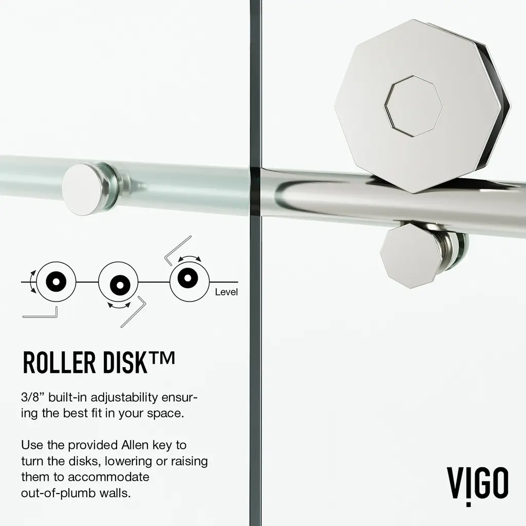 Inspired by minimalistic design, The Elan Hart by VIGO is a beautifully designed frameless bathtub shower door. Elan Hart easily upgrades your tub shower and gives it a more modern perspective. The octagon-shaped rollers provide a dynamic design, enjoy a quieter shower experience and easy walk-in shower entry with smooth sliding. The top rollers, designed using VIGO's proprietary RollerDisk Technology, ensure a lifetime of structural stability. The Elan Collection reimagines your shower experience and brings you a sliding shower system that promises a more relaxing shower experience.Vigo VG60226066 Features:Vigo VG60226066 Specifications: