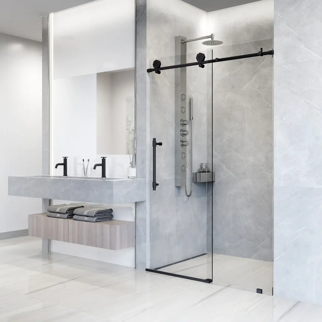 Inspired by minimalistic design, The Elan Hart by VIGO is a beautifully designed frameless shower door. Elan Hart easily upgrades your shower and gives it a more modern perspective. The octagon-shaped rollers provide a dynamic design, enjoy a quieter shower experience and easy walk-in shower entry with smooth sliding. The top rollers, designed using VIGO's proprietary RollerDisk Technology, ensure a lifetime of structural stability. The Elan Collection reimagines your shower experience and brings you a sliding shower system that promises a more relaxing shower experience.Vigo VG60226076 Features:Vigo VG60226076 Specifications: