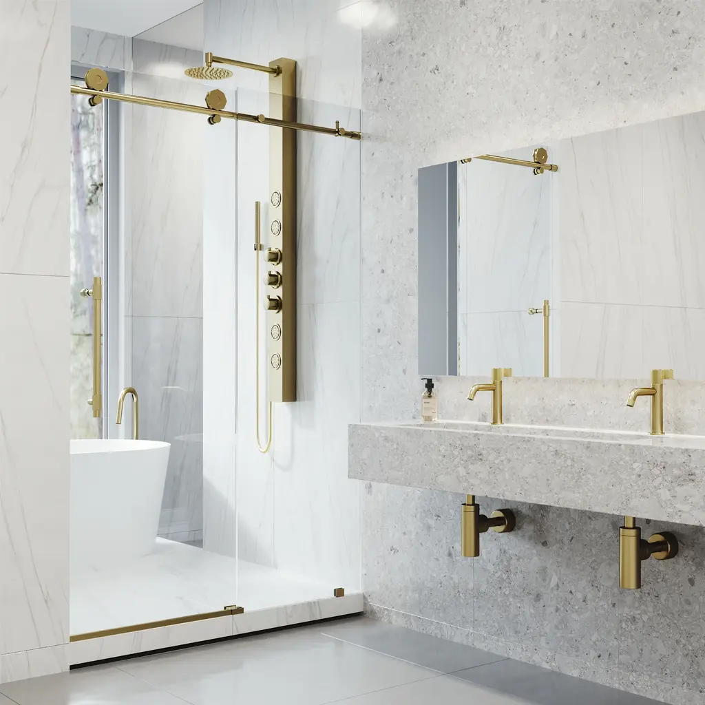 Inspired by minimalistic design, The Elan Hart by VIGO is a beautifully designed frameless shower door. Elan Hart easily upgrades your shower and gives it a more modern perspective. The octagon-shaped rollers provide a dynamic design, enjoy a quieter shower experience and easy walk-in shower entry with smooth sliding. The top rollers, designed using VIGO's proprietary RollerDisk Technology, ensure a lifetime of structural stability. The Elan Collection reimagines your shower experience and brings you a sliding shower system that promises a more relaxing shower experience.Vigo VG60227276 Features:Vigo VG60227276 Specifications: