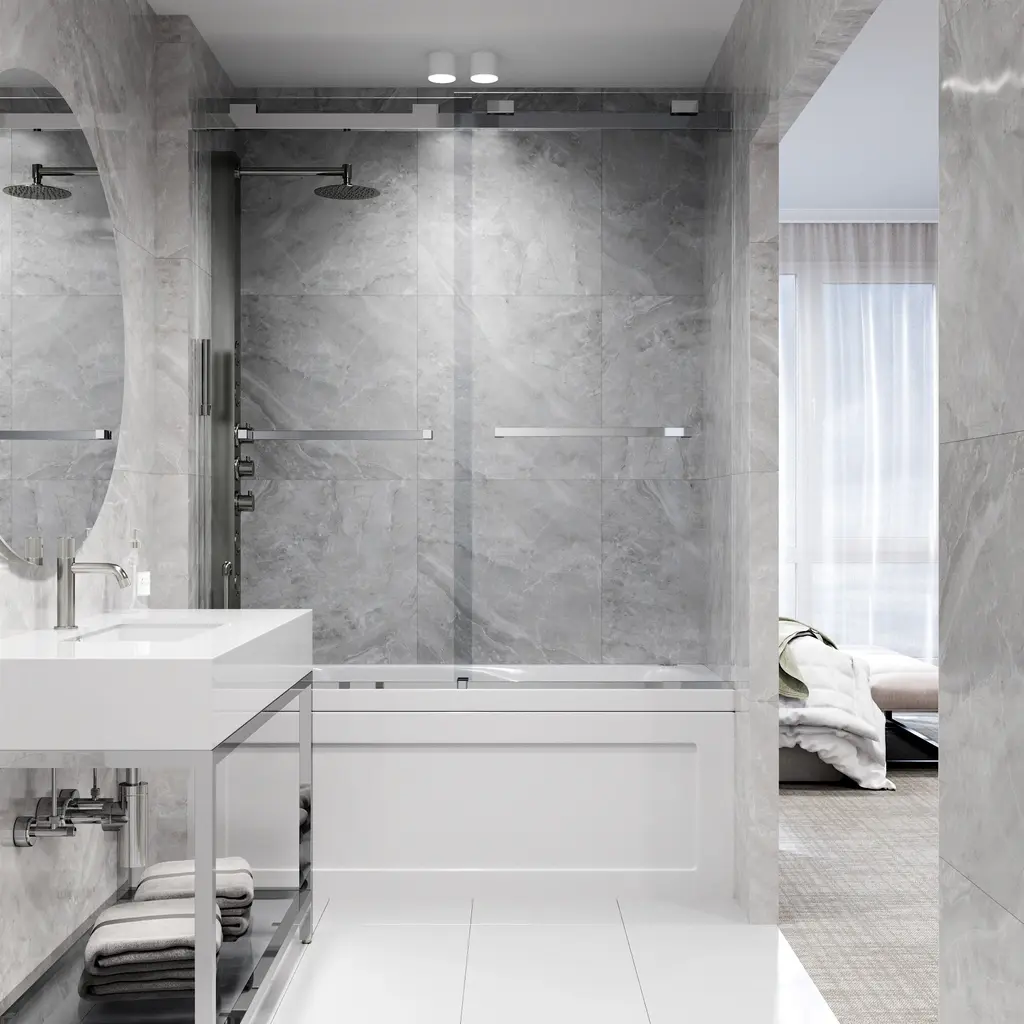 Vigo Vg6023cl6066 Houston 66" High X 60" Wide Sliding Frameless Tub - Stainless Steel
