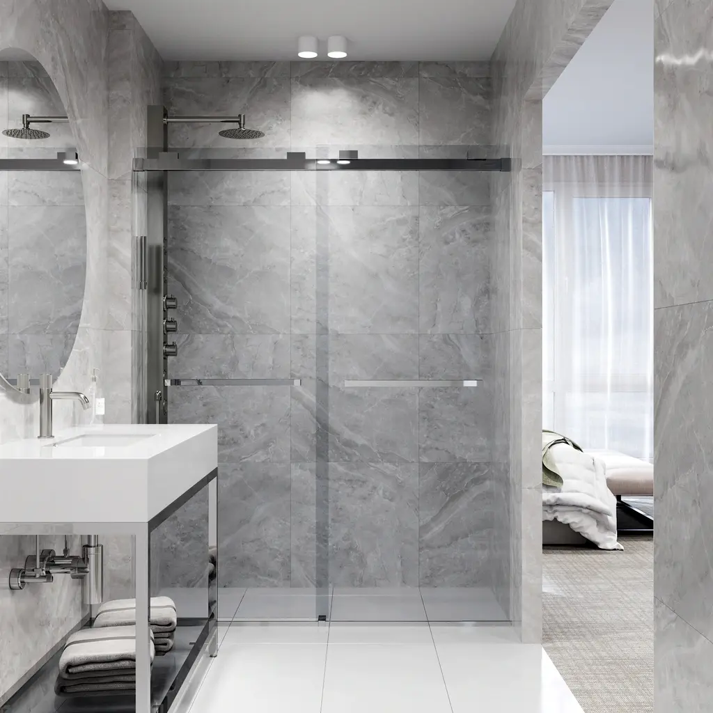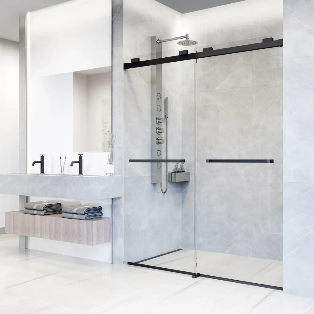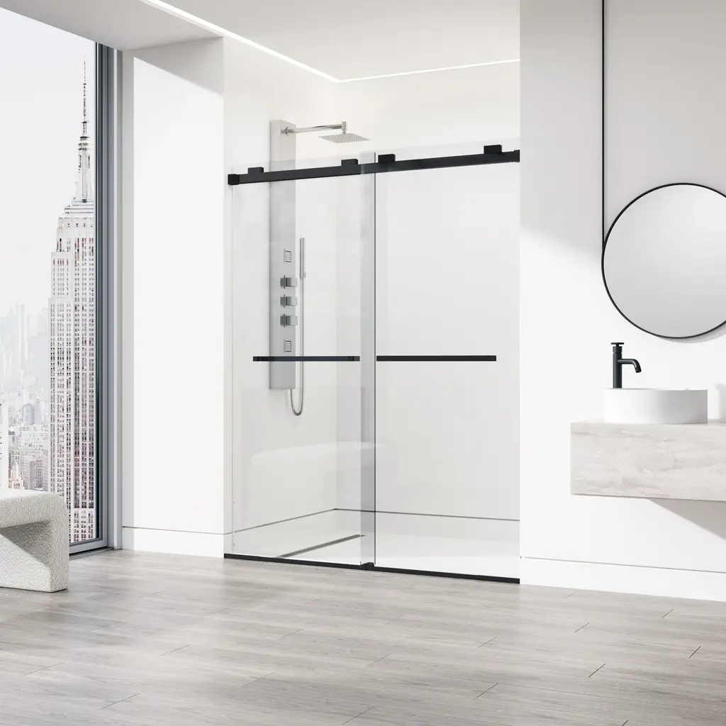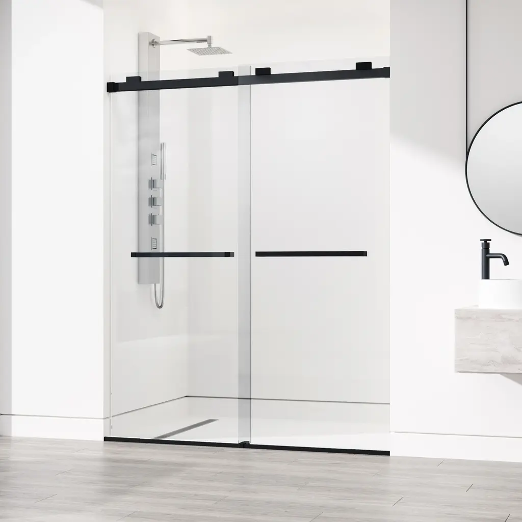 The new Houston by VIGO is a frameless shower door made to fit the classic contemporary and minimalistic look for your bathroom space. Its smooth double-sliding mechanism with a soft closing feature allows the door to close safely and slowly as well as granting easy entry. The full-length seal strips prevent water leaks and keep your bathroom floors dry. Houston's tempered glass panels are durable and highly safe, making them ideal for everyday use. The included components and simple instructions allow for an easy DIY-style installation at your home.Vigo VG6023CL6076 Features:Vigo VG6023CL6076 Specifications: