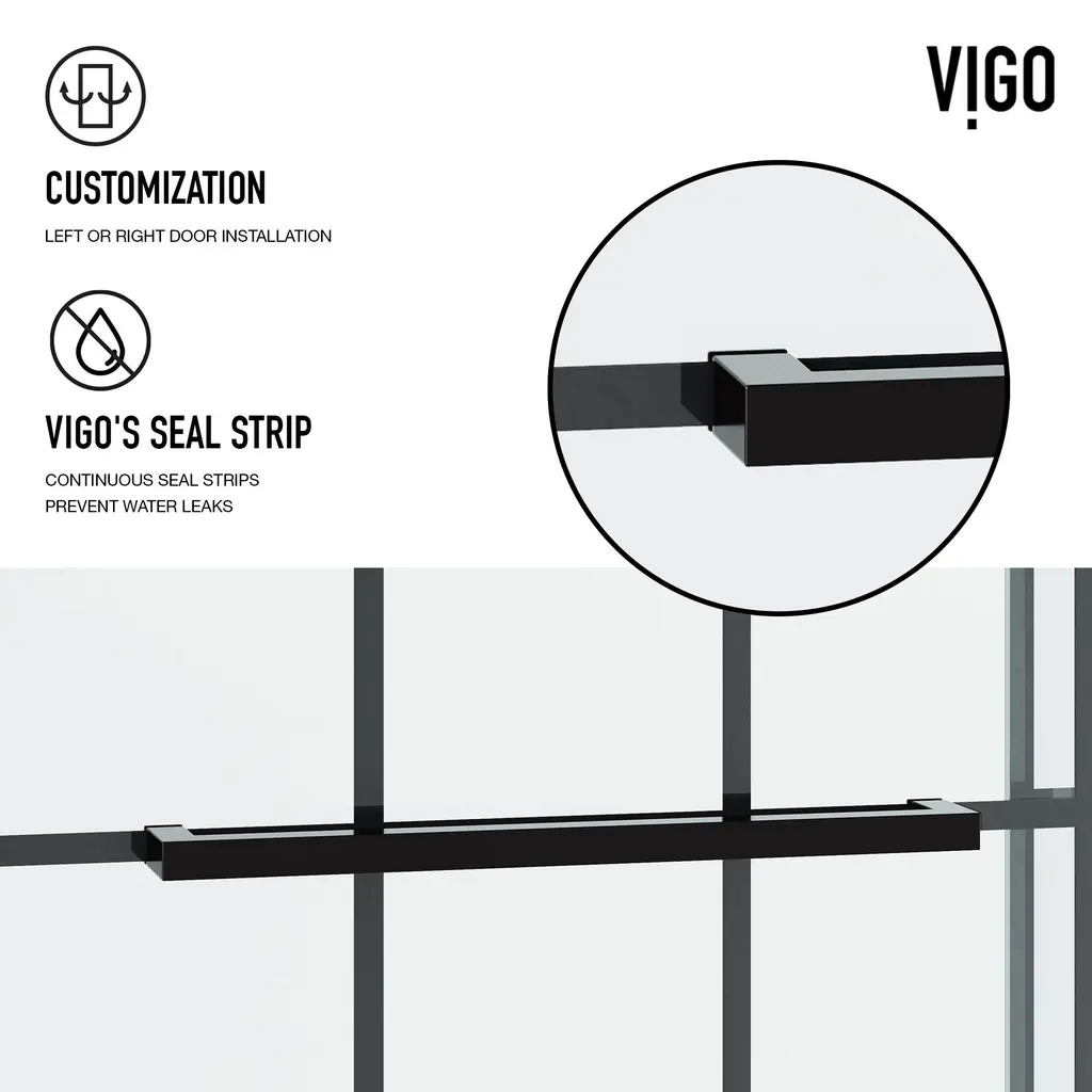 Vigo Vg6023gcl6076 Houston 76" High X 60" Wide Sliding Frameless - Matte Black