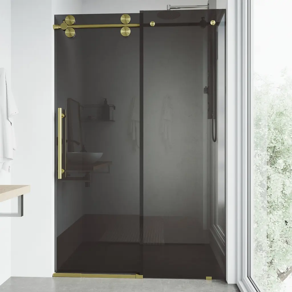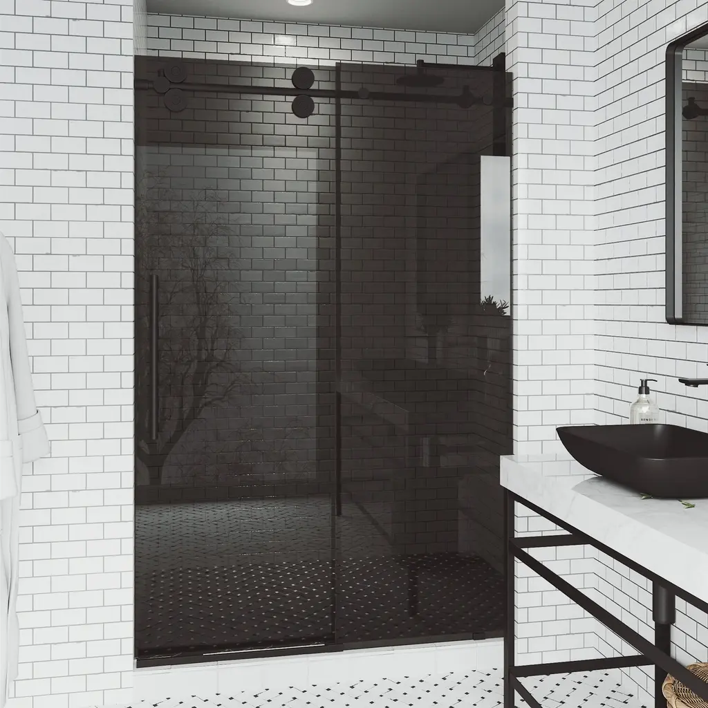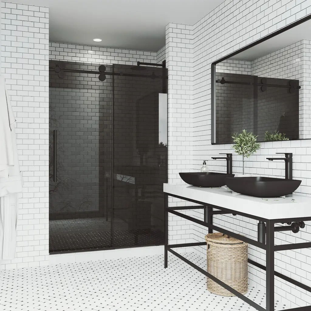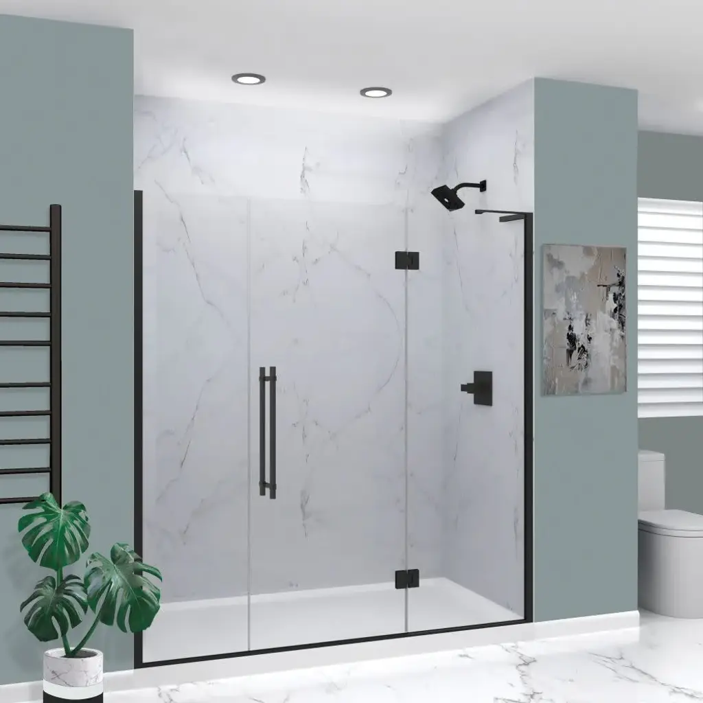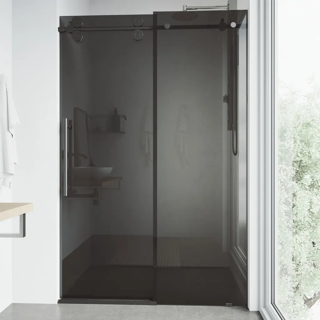 The VIGO Elan Adjustable Frameless Shower Door is everything you want and need to complete your bathroom remodel. Made with VIGO’s proprietary RollerDisk™ Technology, this door has built-in adjustability to ensure that it is a perfect fit in your shower. This door features resilient tempered glass to prevent dangerous splinters and shards. With the option for right or left-side installation, the VIGO Elan is as versatile as it is sturdy. Stainless-steel hardware outfitted in a 7-layer plated, rust-free finish completes this one-of-a-kind design.Vigo VG6041BLK6074 Features:Vigo VG6041BLK6074 Specifications: