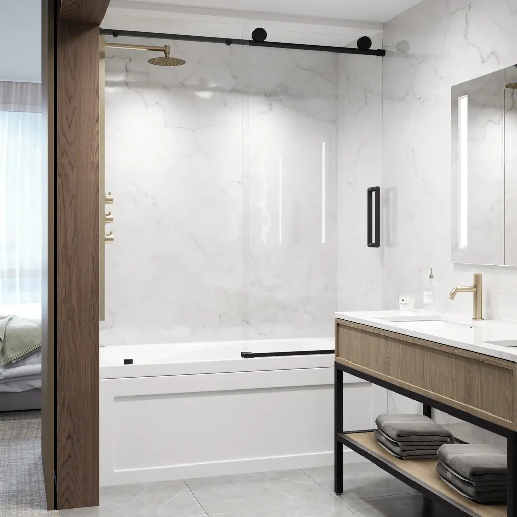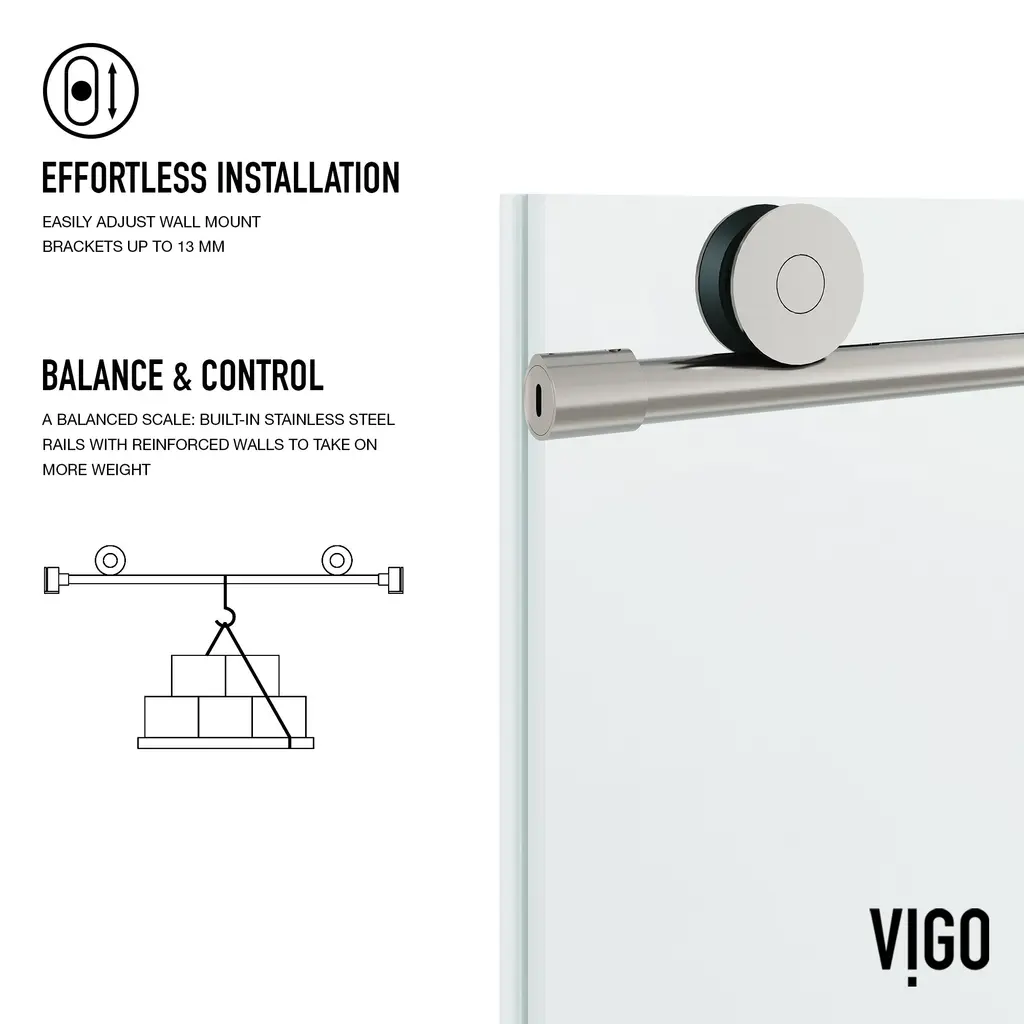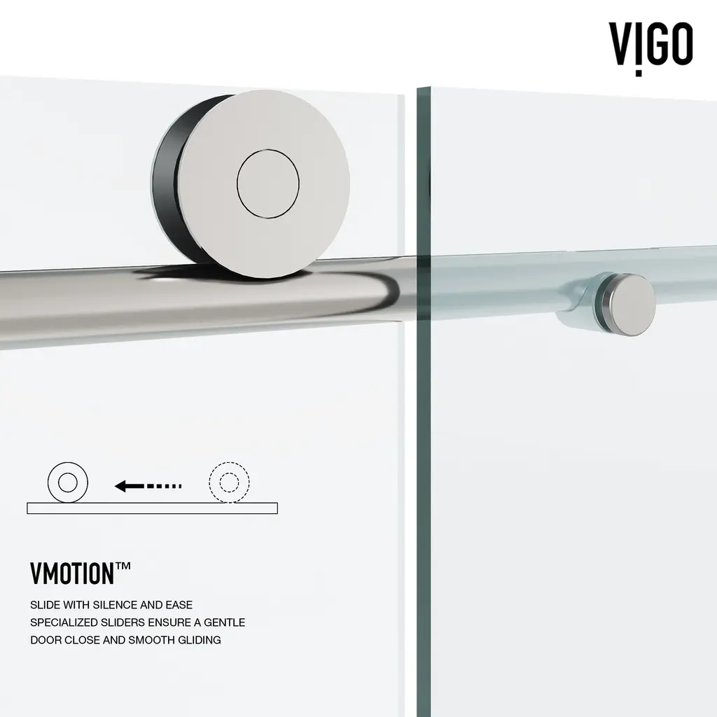 The Elan Frameless Sliding Shower Door featuring VMotion is a modern door that prioritizes an innovative soft-closing technology for a silent and extraordinary shower experience. This soft-closing door is crafted with high-quality steel and brass hardware to resist rust and tarnish, ensuring long-lasting durability. Setting it apart within the classic Elan shower door collection, this door comes equipped with specially designed sliders to ensure a gentle closure to eliminate any potential for disruptive door slammingVigo VG6041CLSC7276 Features:Vigo VG6041CLSC7276 Specifications:
