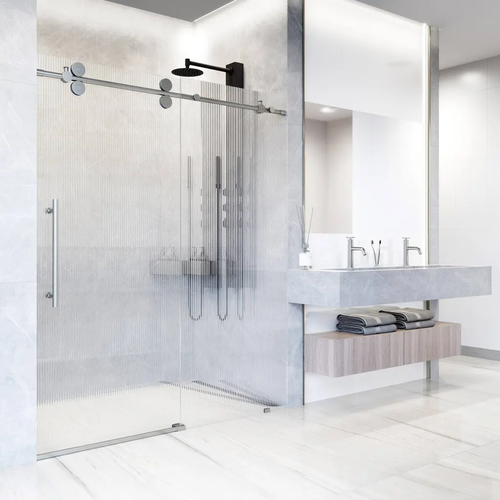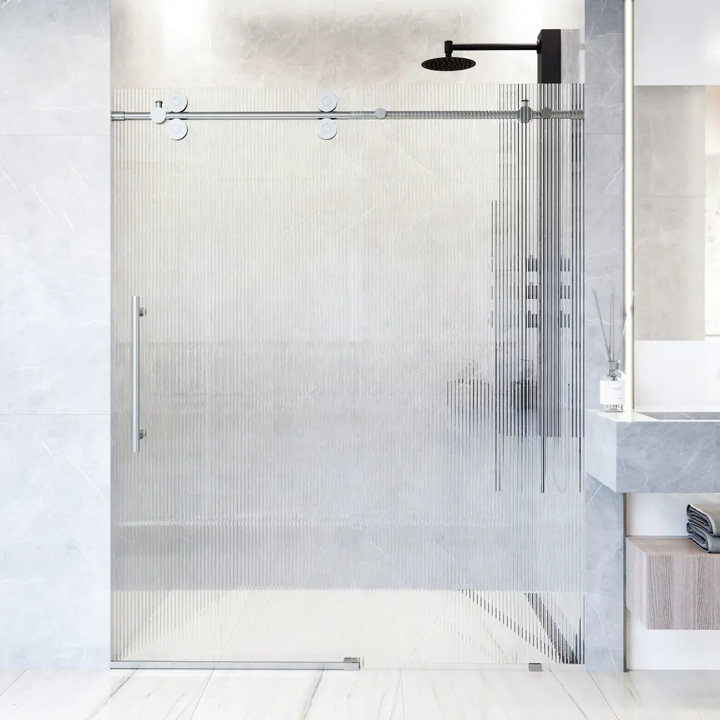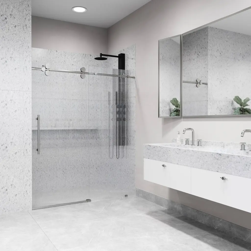 The VIGO Elan Frameless Sliding tub door invites a modern aesthetic to your bathroom with its eye-catching Roller Disk™ and a sleek door handle. Crafted with high-quality tempered glass and durable stainless steel hardware, Elan will be an everlasting component of your home. The door supports either a left-side or right-side opening installation. The top rail support allows for wall anchoring to improve stability. The single water deflector redirects water toward the inside of the shower, and the full-length seal strips make the shower waterproof. Its simple instructions allow for an easy, DIY-style installation at home.Vigo VG6041FL6074L Features:Vigo VG6041FL6074L Specifications: