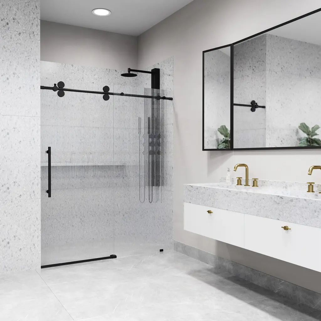 Vigo Vg6041fl6074l Elan 74" High X 60" Wide Sliding Frameless Shower - Matte Brushed Gold