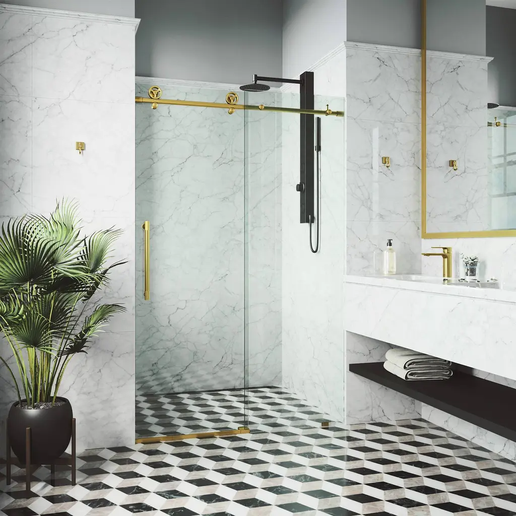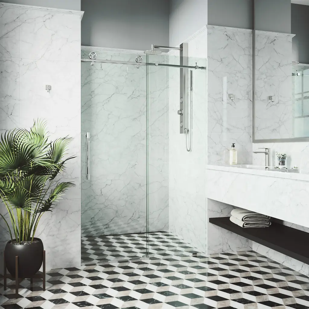 Vigo Vg6044cl5276 Elan Cass 76" High X 52" Wide Sliding Frameless - Matte Black